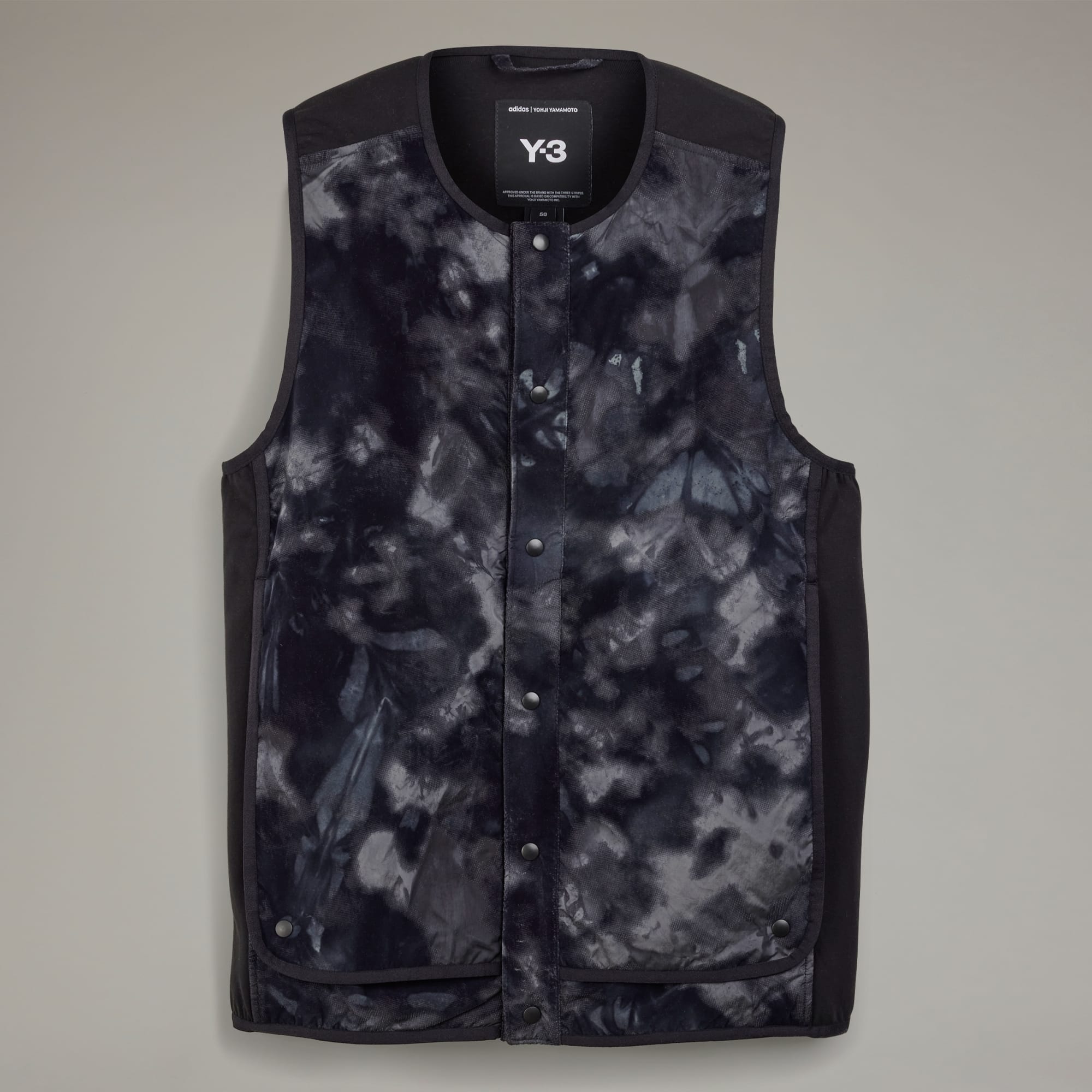 With the Y-3 Allover Print Nylon Shell Crew Vest, Y-3 once again explores the edges of what's expected. A flock print on the material-mix fabrication is tie dyed to add colour and texture. Snap-button side panels add both sophistication and utilitarianism to the aesthetic. A Y-3 logo signs off.
