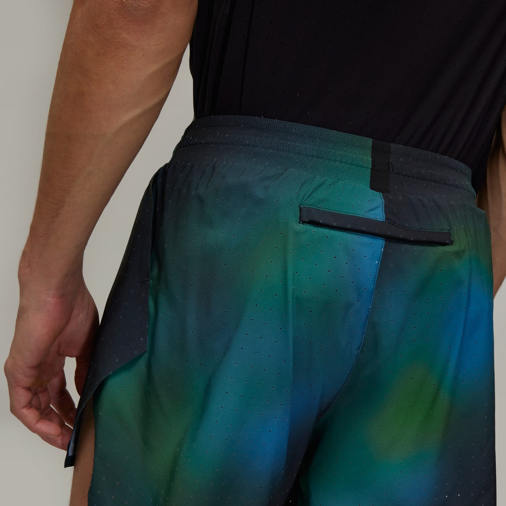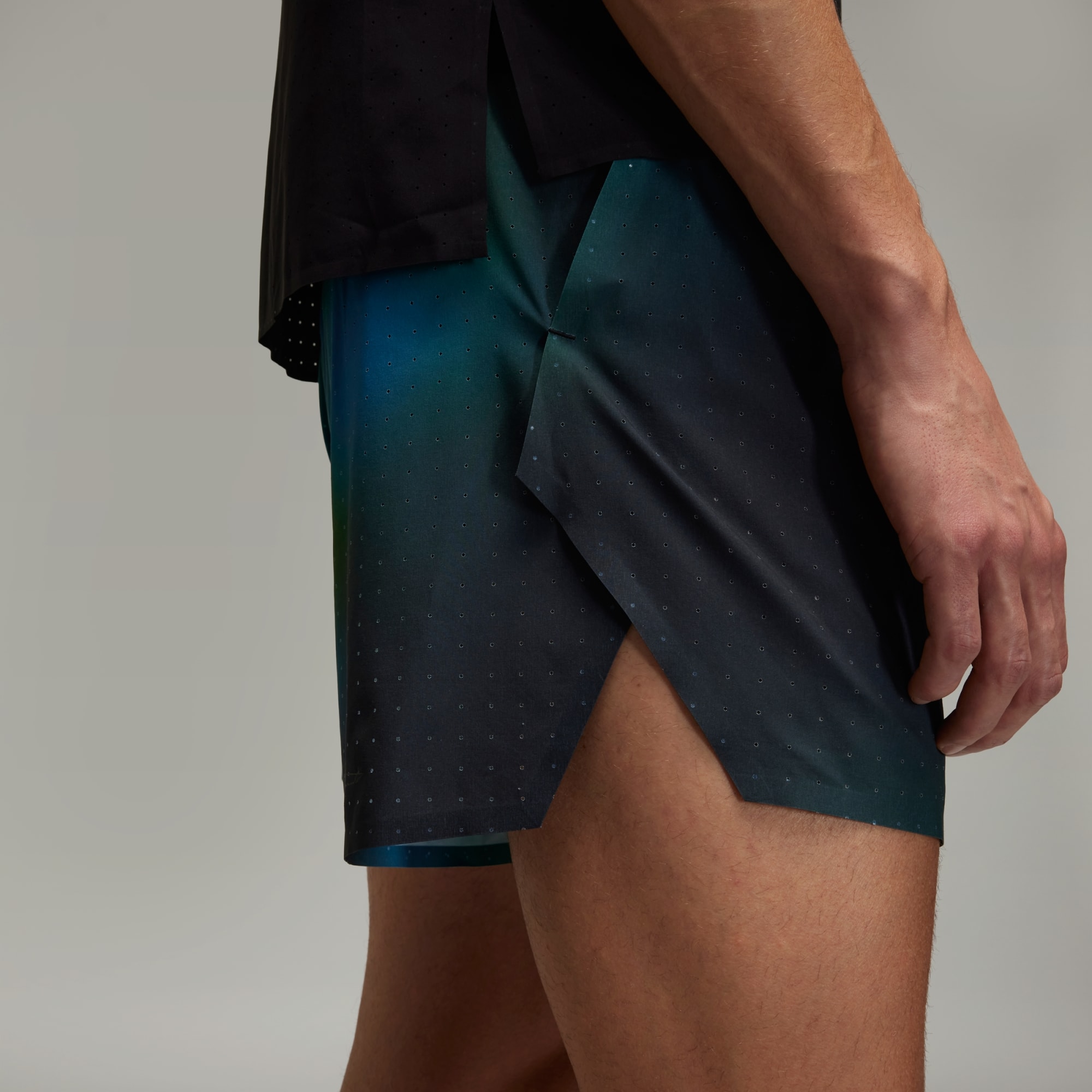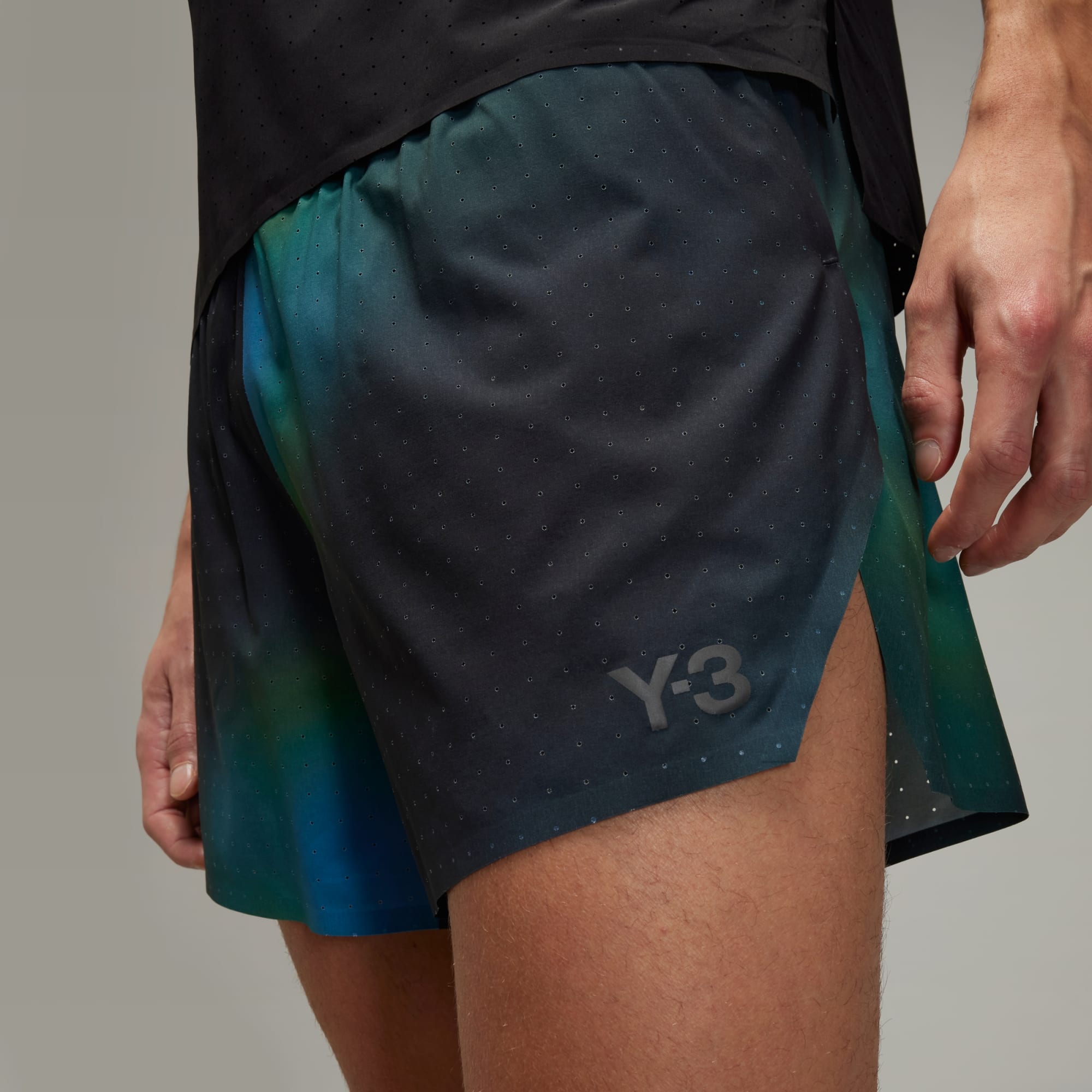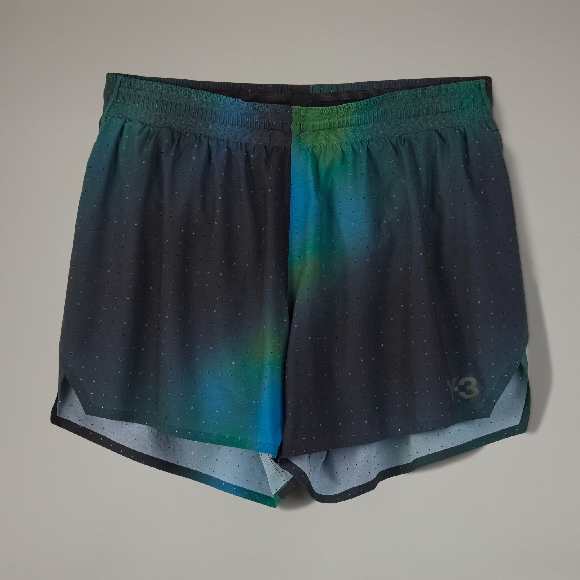 Performance running shorts from Y-3 with a blurred allover print.