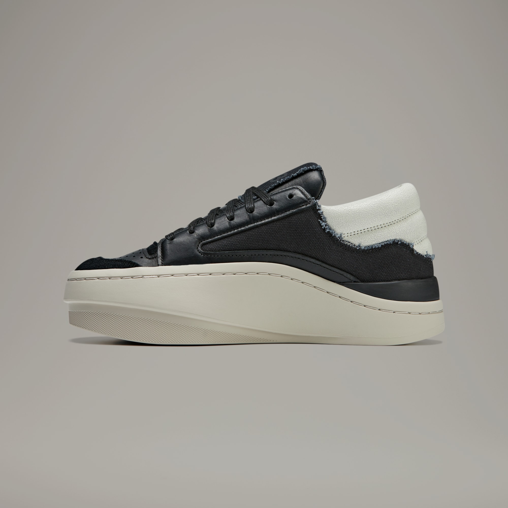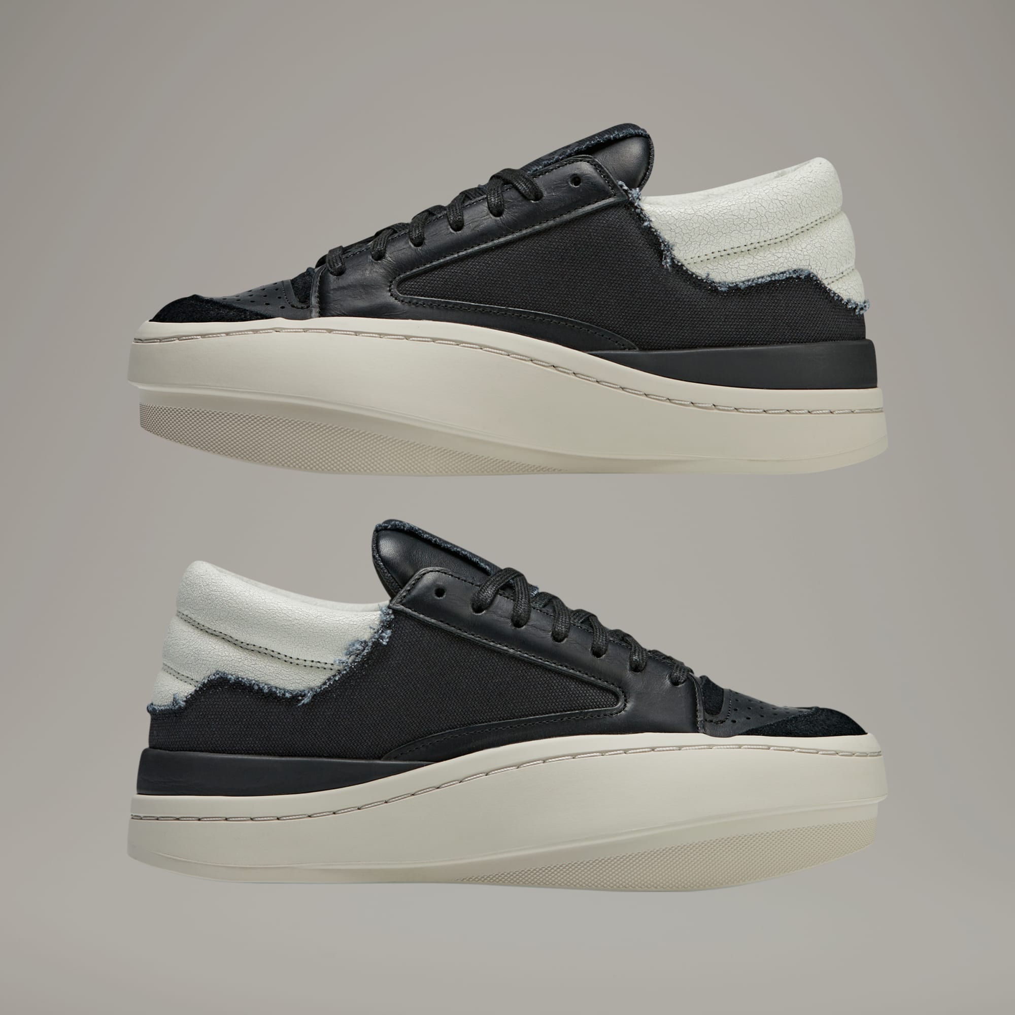 A modern interpretation of a basketball silhouette, the Y-3 Centennial Lo uses a mash-up of design cues from the adidas archives to create a bold aesthetic. Different materials come together — the textures and layers adding depth through a combination of leather, canvas, suede and cracked leather. The wide forefoot is to be expected, practically synonymous with Y-3 court shoes.