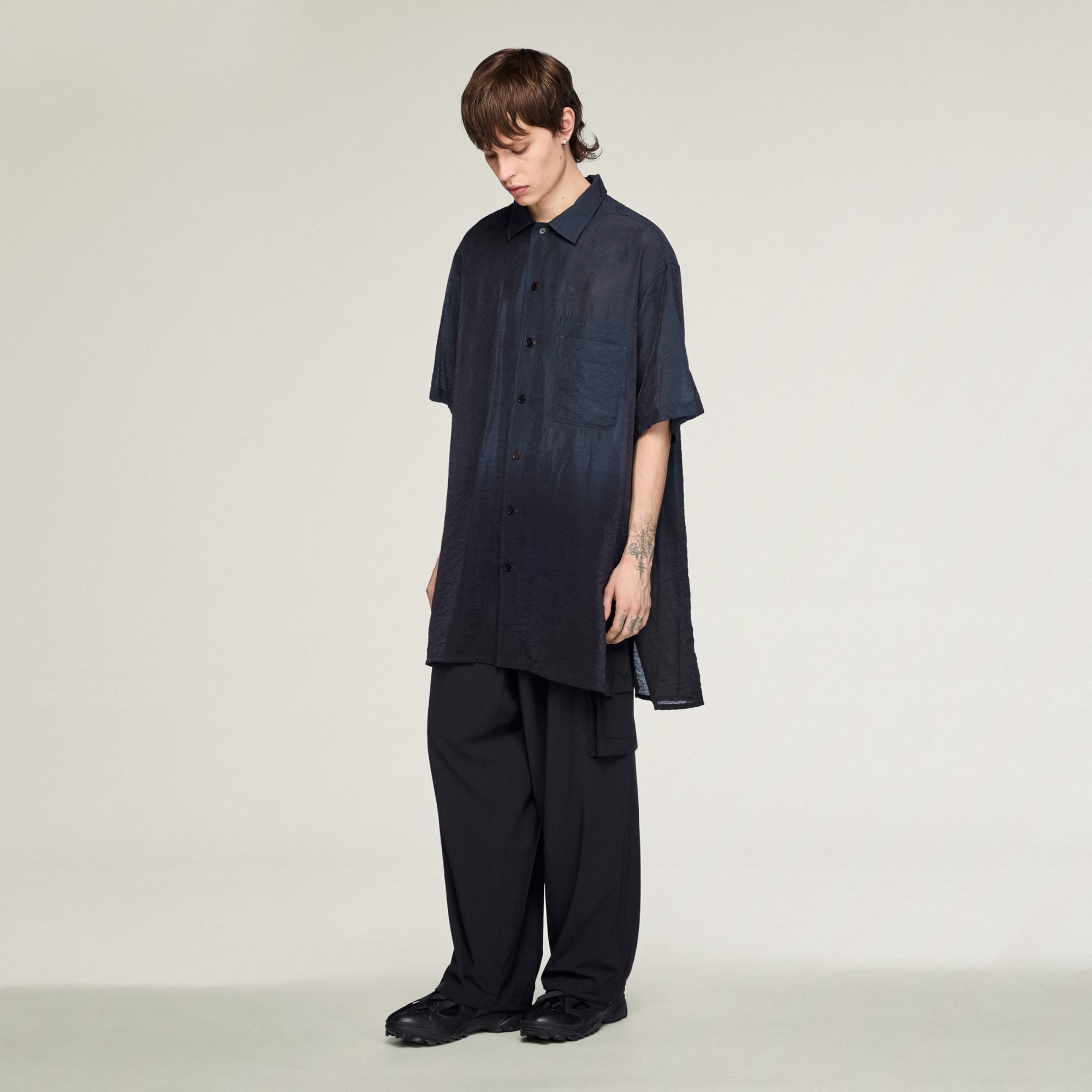 The Y-3 Dip Dye Short Sleeve Long Shirt is inspired by adidas’ history in sportswear and defined by Yohji Yamamoto’s eye for unconventional fashion. Crafted with a plain weave construction, this long shirt blends high fashion with adidas' technical prowess. The collar adds a touch of sophistication, while the regular fit offers comfort and ease of movement. A great choice for those who appreciate the finer details, the shirt features the iconic Y-3 logo heat transfer, a mark of quality and style. This shirt from adidas is more than just a piece of clothing; it's an embodiment of strength, progressiveness, and inclusivity.