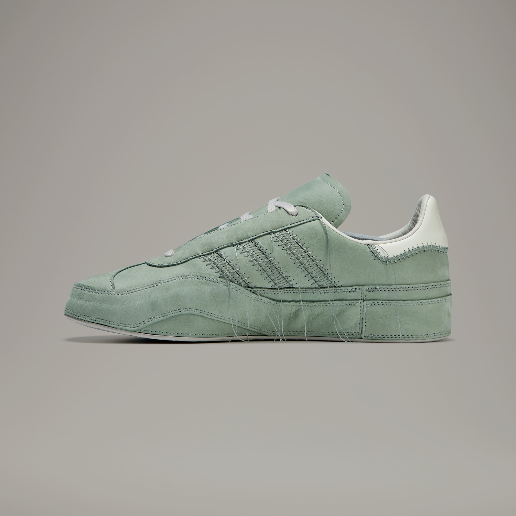 An adidas classic as seen through the lens of Y-3. The famed Gazelle gets reimagined with accentuated, tonal stitching around the eyestay, heel tab, midsole and signature 3-Stripes, with all threads purposefully hanging loosely in a nod to Japanese Sashiko stitching. The shoes are wrapped in nubuck and have foxing tape around the entire midsole, which curves on the lateral side for a subtle yet distinctive look.