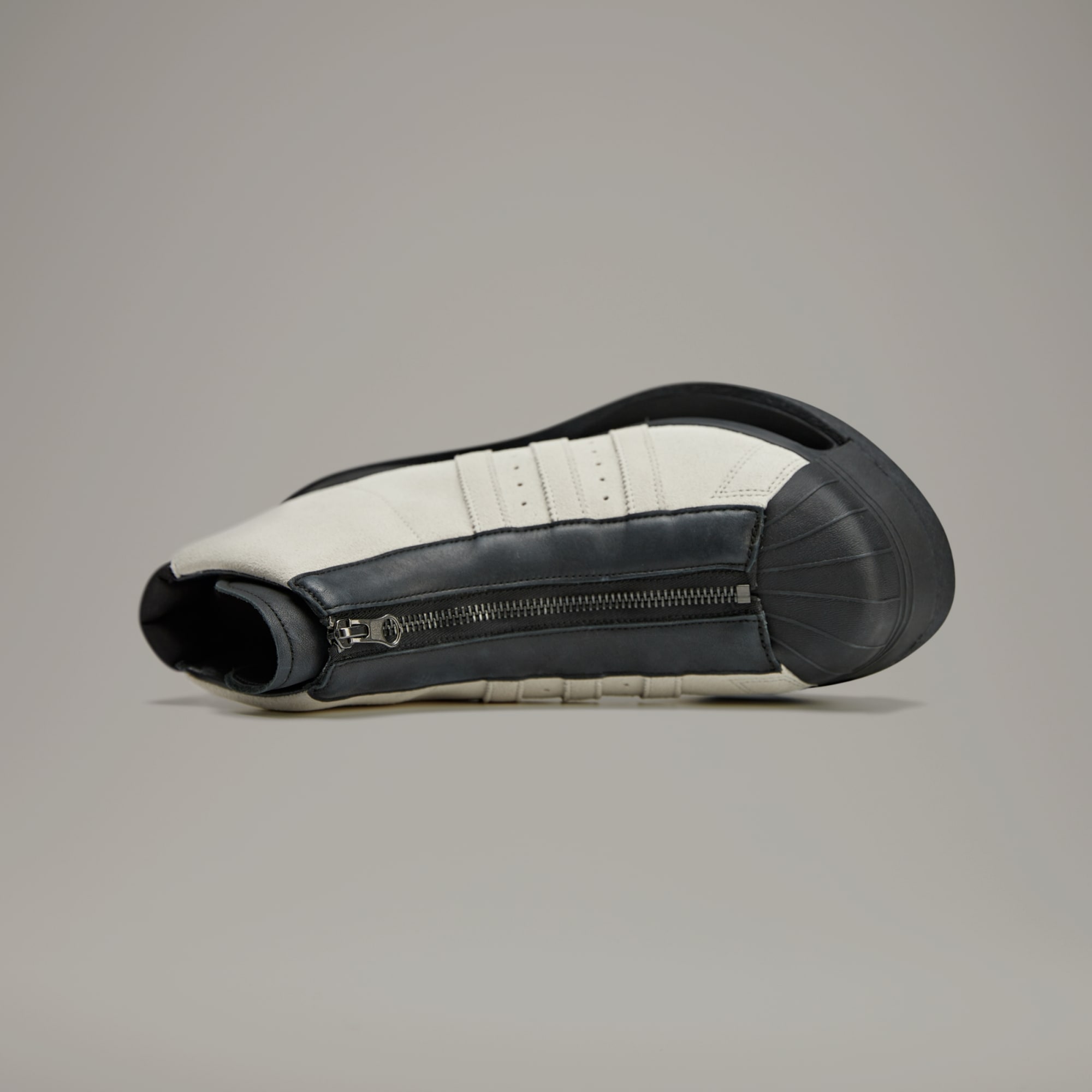 One of the most advanced and daring Y-3 profiles to date, the Y-3 Gendo Pro Model is designed with a fully hollow space in the midsole. They take to heart a philosophical Japanese concept called Ma, which explores how a pause in time or negative space can generate beauty in a way that isn't absent of anything at all, in the end. The bold expression contrasts with cues from the adidas Pro Model shoes, executed in premium suede with neoprene detail on the heel. A full-zip closure system replaces classic laces. Yohji Yamamoto's signature signs off as a final touch.