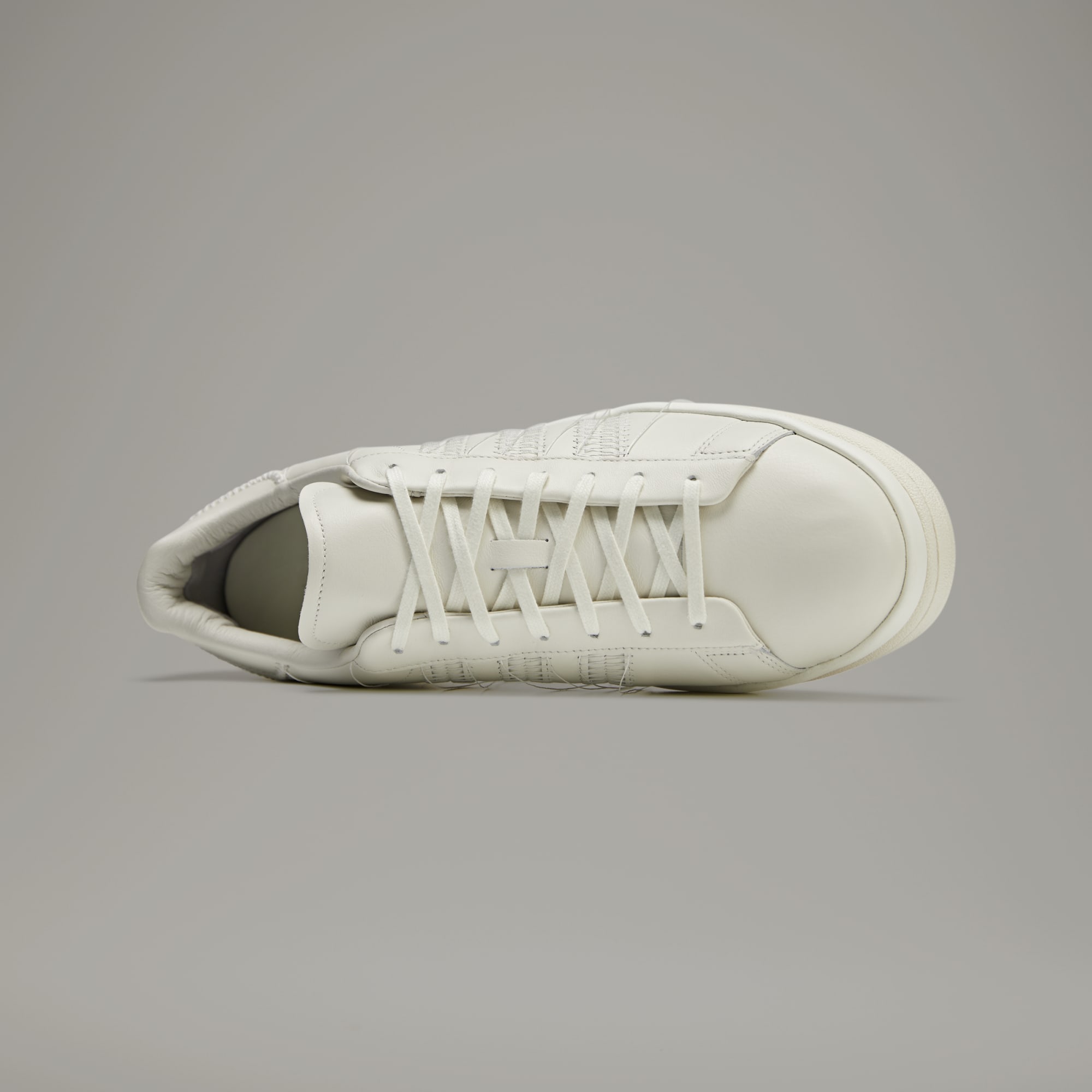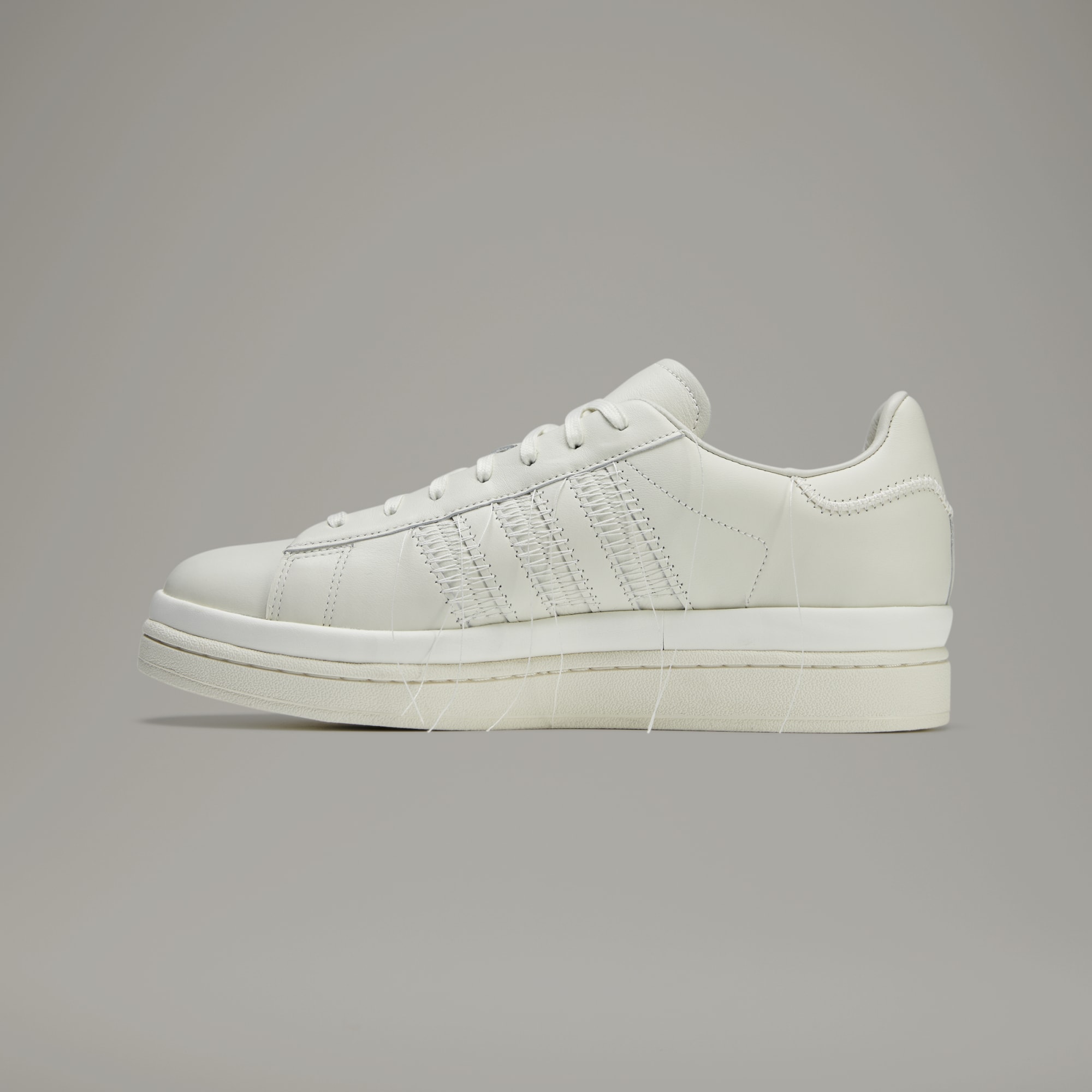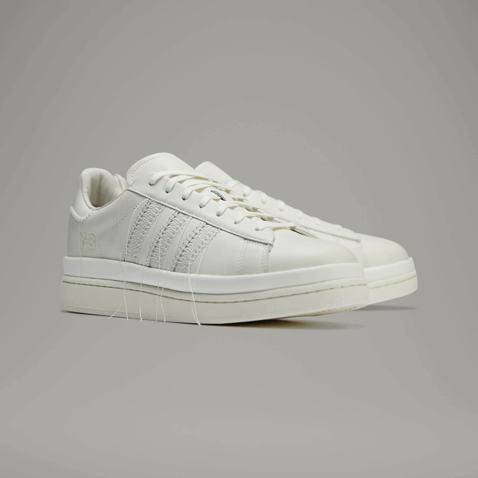"Y-3 is a strong examination of the blend of sport and style and the tension caused by mixing tradition with all that is modern." — Yohji Yamamoto The Hicho Shoes view the classic adidas Campus shoes through the lens of Y-3. The smooth leather upper rides on a thick platform, adding height and creating a subtle statement. In a nod to the Japanese technique of Sashiko stitching, the trainers have accentuated, tonal stitching around the eyestay, heel tab, midsole, and signature 3-Stripes, with all threads purposefully hanging loosely.