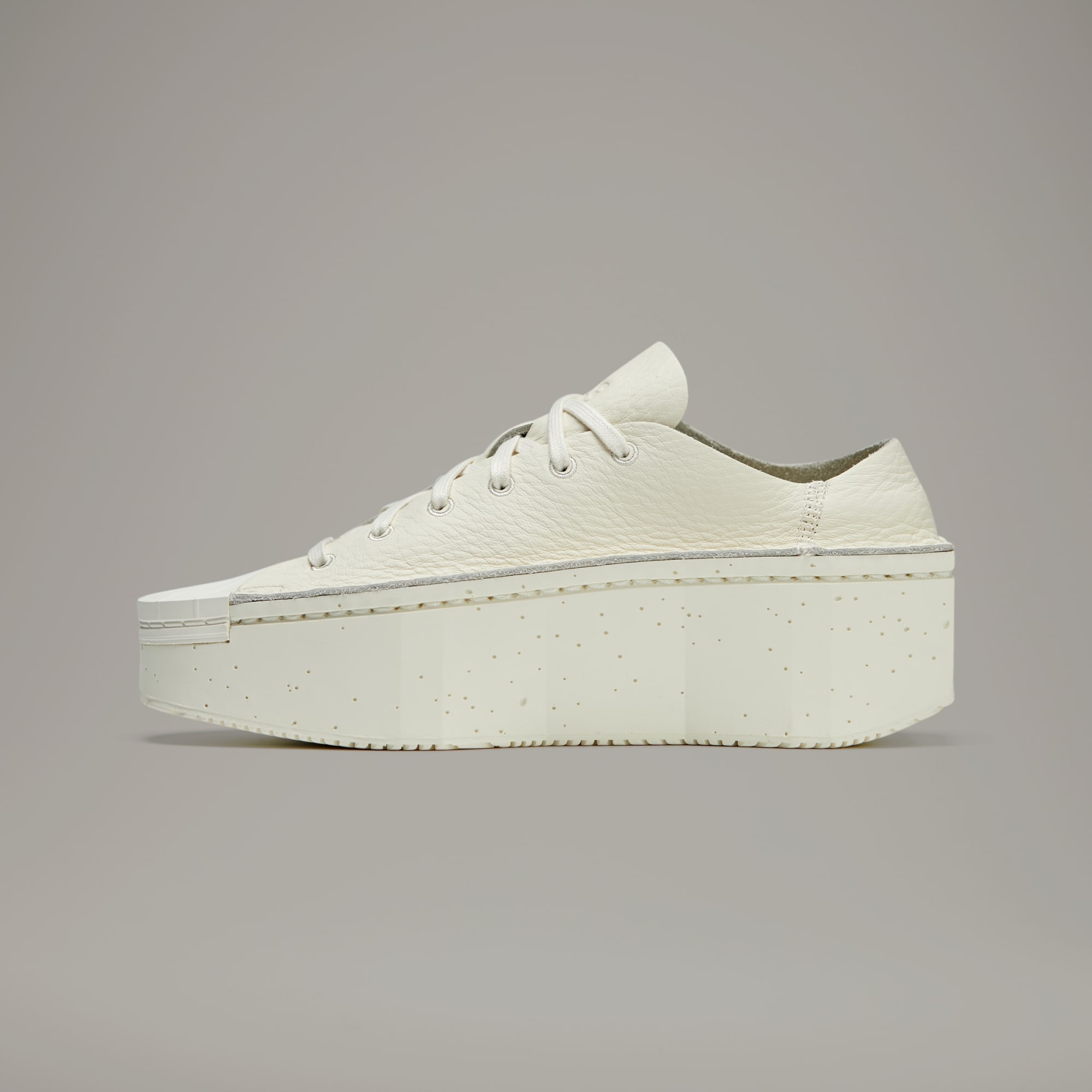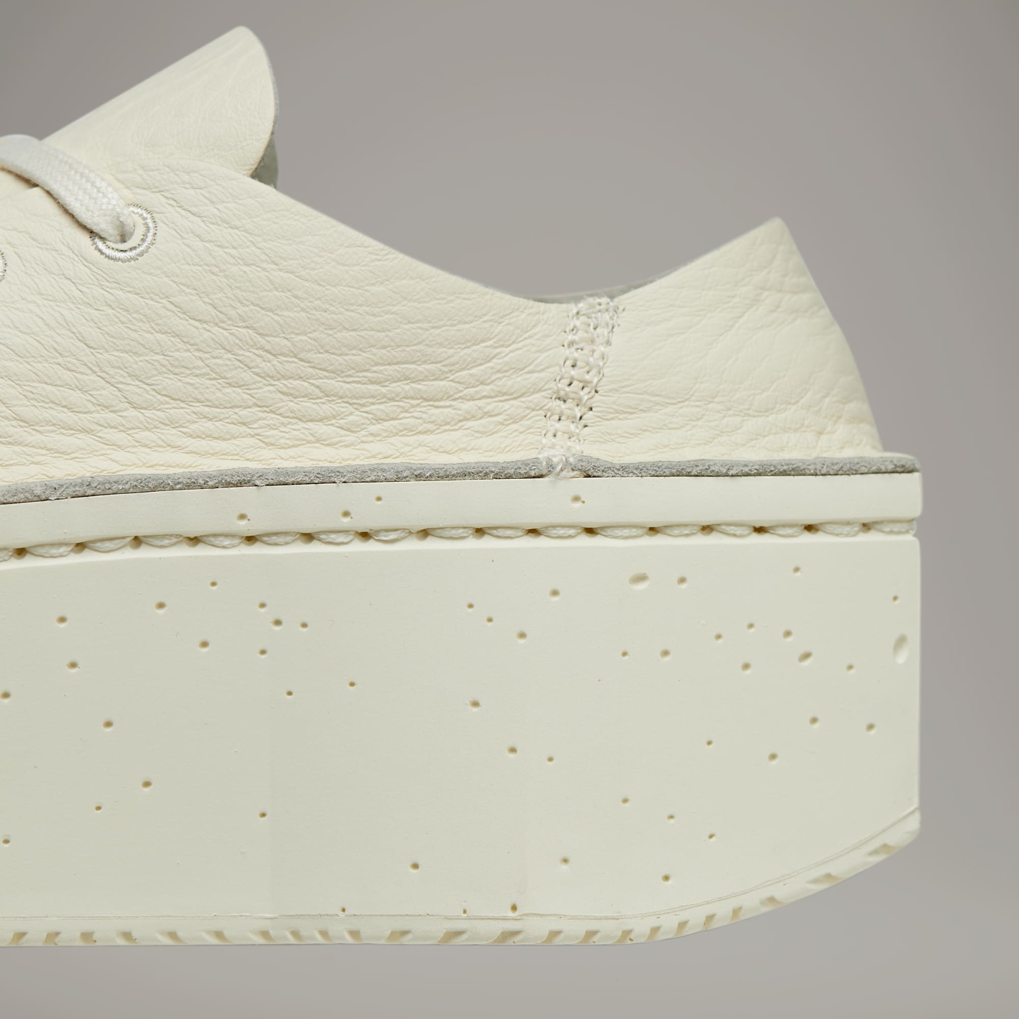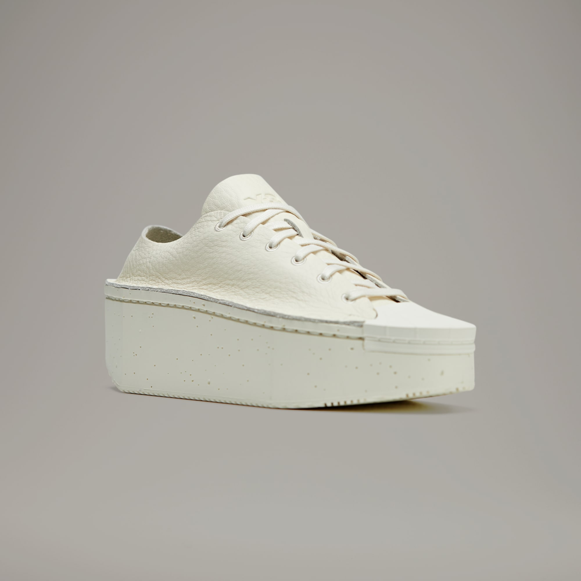 The Y-3 Kyasu Low skews conventional design and focuses instead on minimalist expression. Without using any glue or lining, the tooling is crafted with a one-piece polyurethane build, with the single-layer leather upper stitched onto the irregular, concrete-like structure. The result is a completely raw interpretation of a shoe and an entirely new interpretation of an adidas icon.