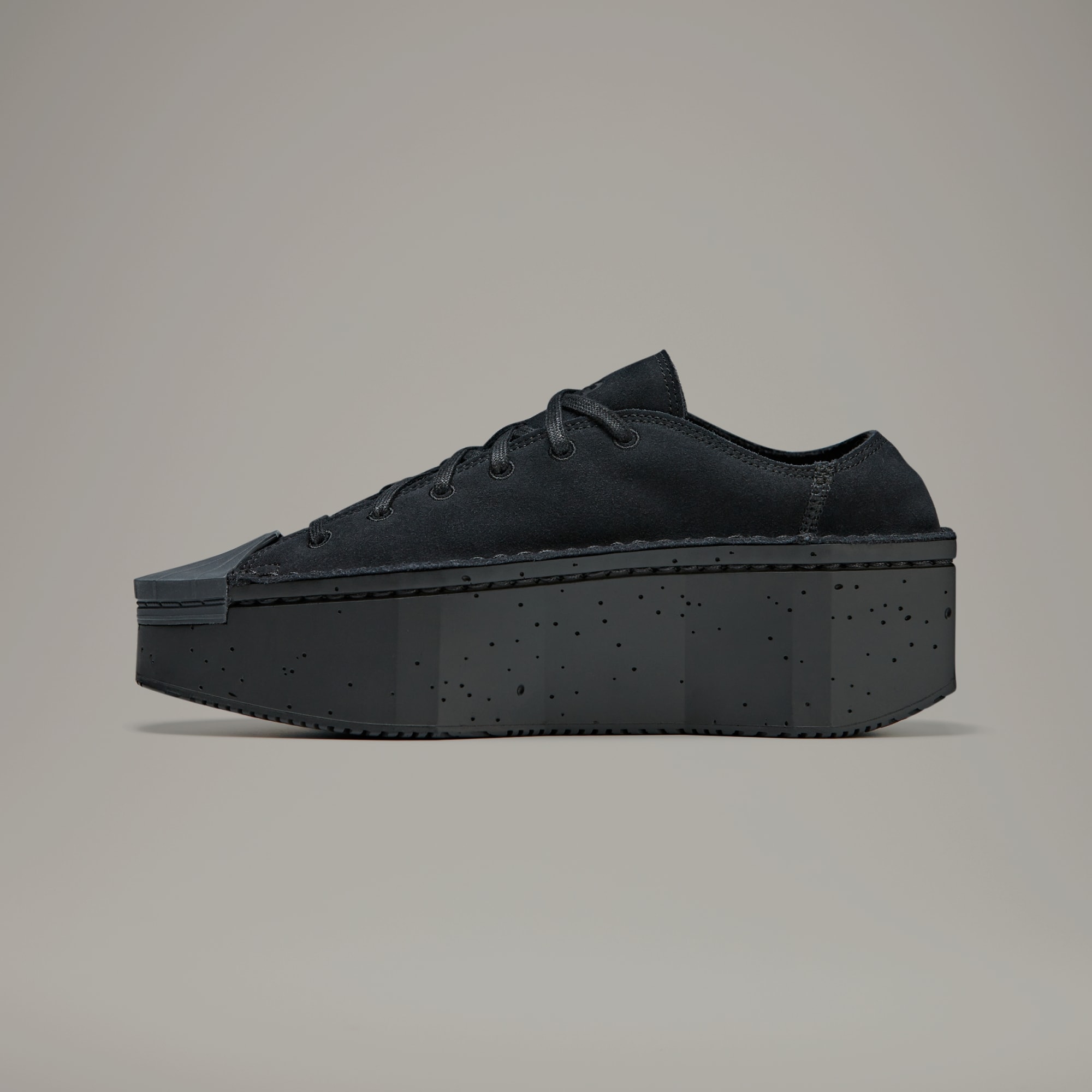 The Y-3 Kyasu Low skews conventional design and focuses instead on minimalist expression. Without using any glue or lining, the tooling is crafted with a one-piece polyurethane build, with the single-layer leather upper stitched onto the irregular, concrete-like structure. The result is a completely raw interpretation of a shoe and an entirely new interpretation of an adidas icon.