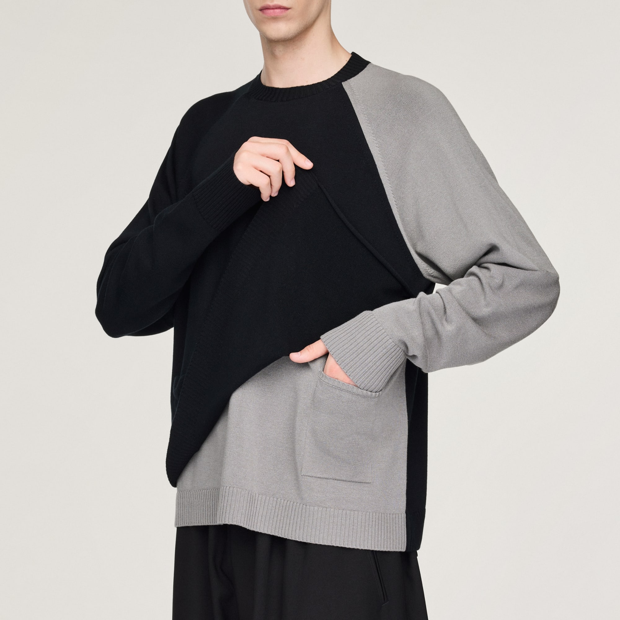 - Ribbed crewneck