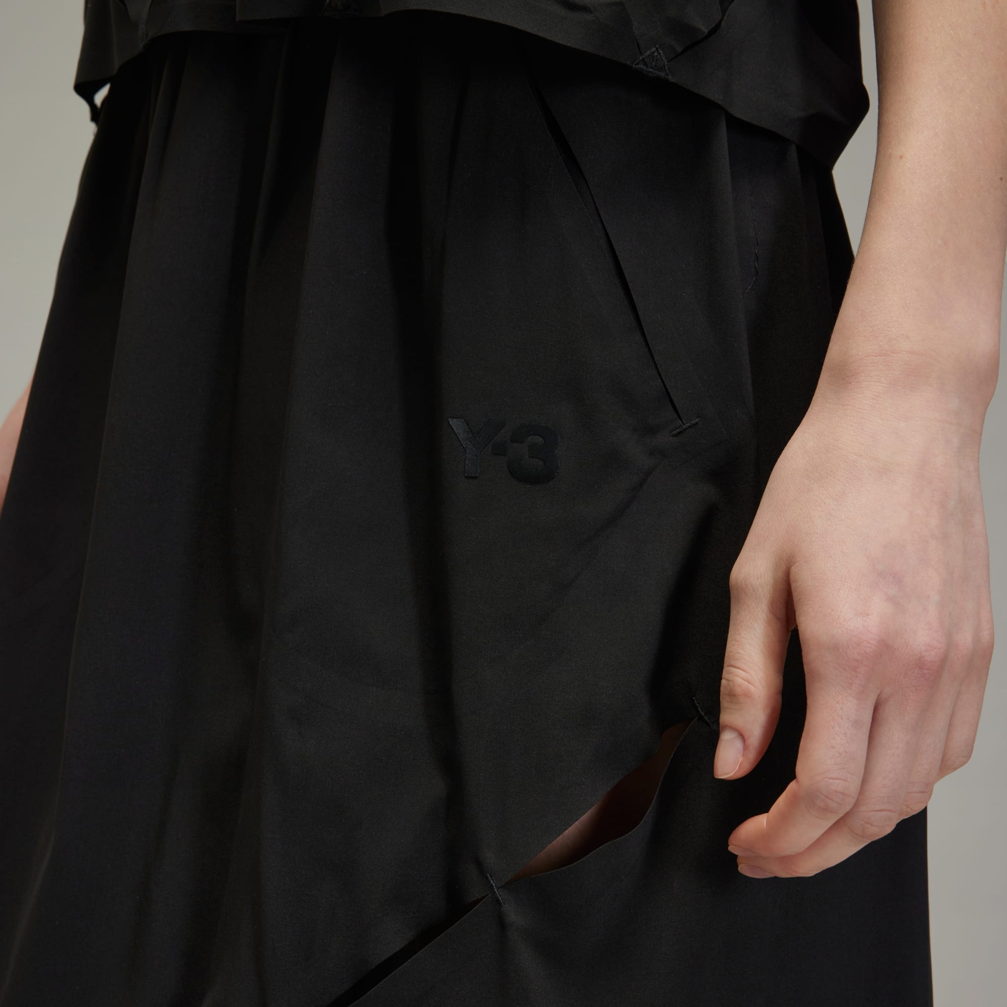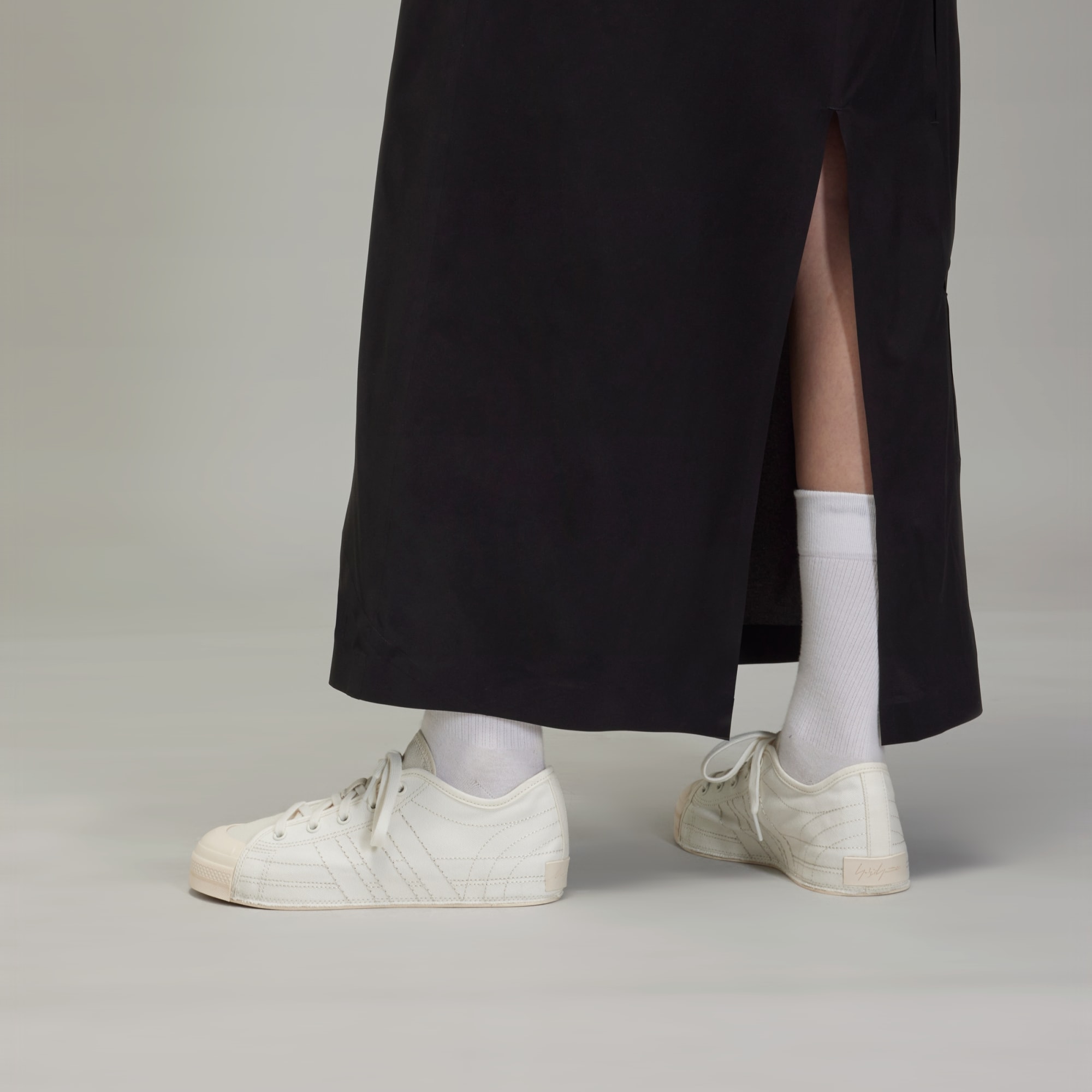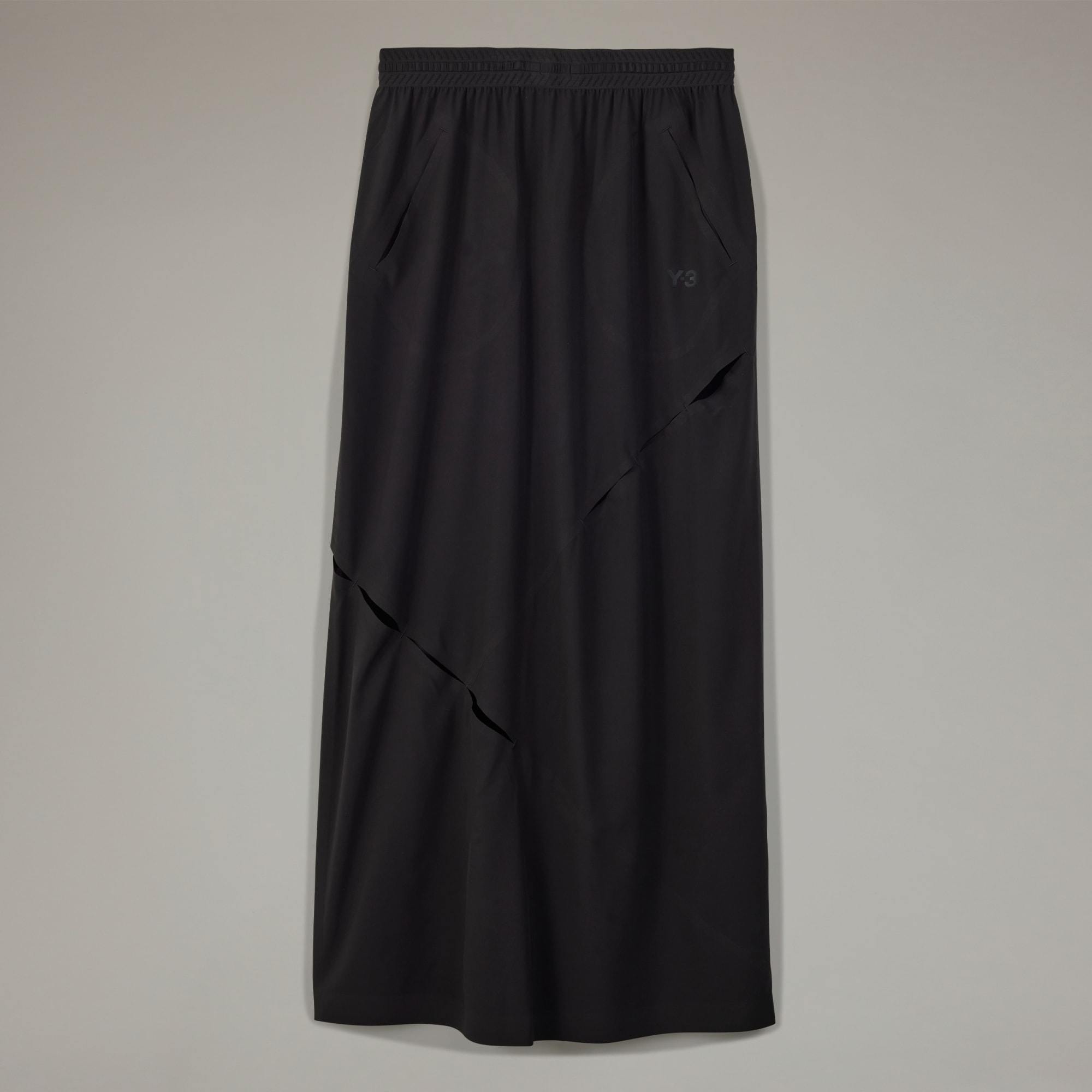 The Y-3 Long Skirt is constructed in lightweight stretch woven, bringing the performance fabric into the fashion realm. It's cut long with a customisable waist. Bonded ventilation slits are placed asymmetrically across the body.