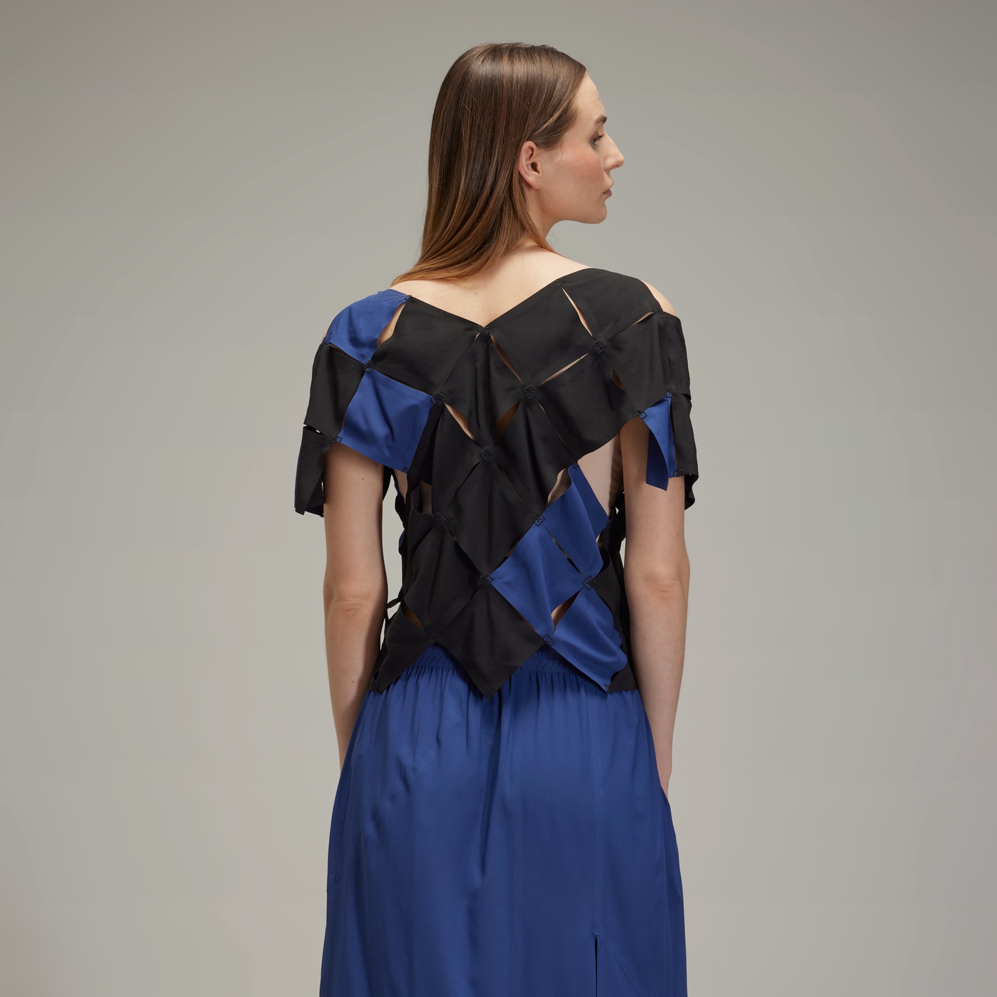 The Y-3 Puzzle Top plays with the concept of airflow and ventilation. It's crafted in a lightweight stretch woven fabric, recontextualising the technical build through a fashion lens. Bonded squares create an intricate, vented puzzle-piece design.