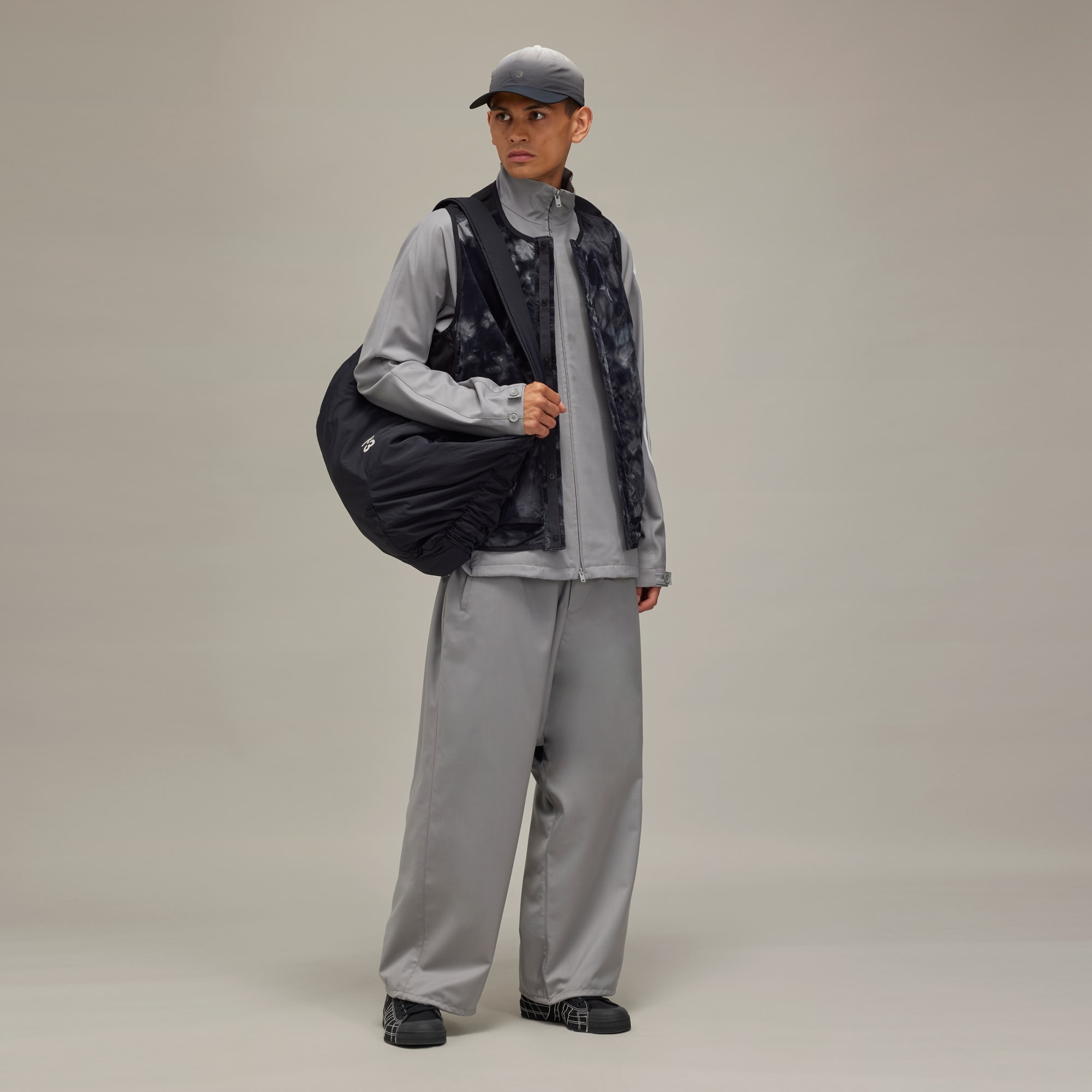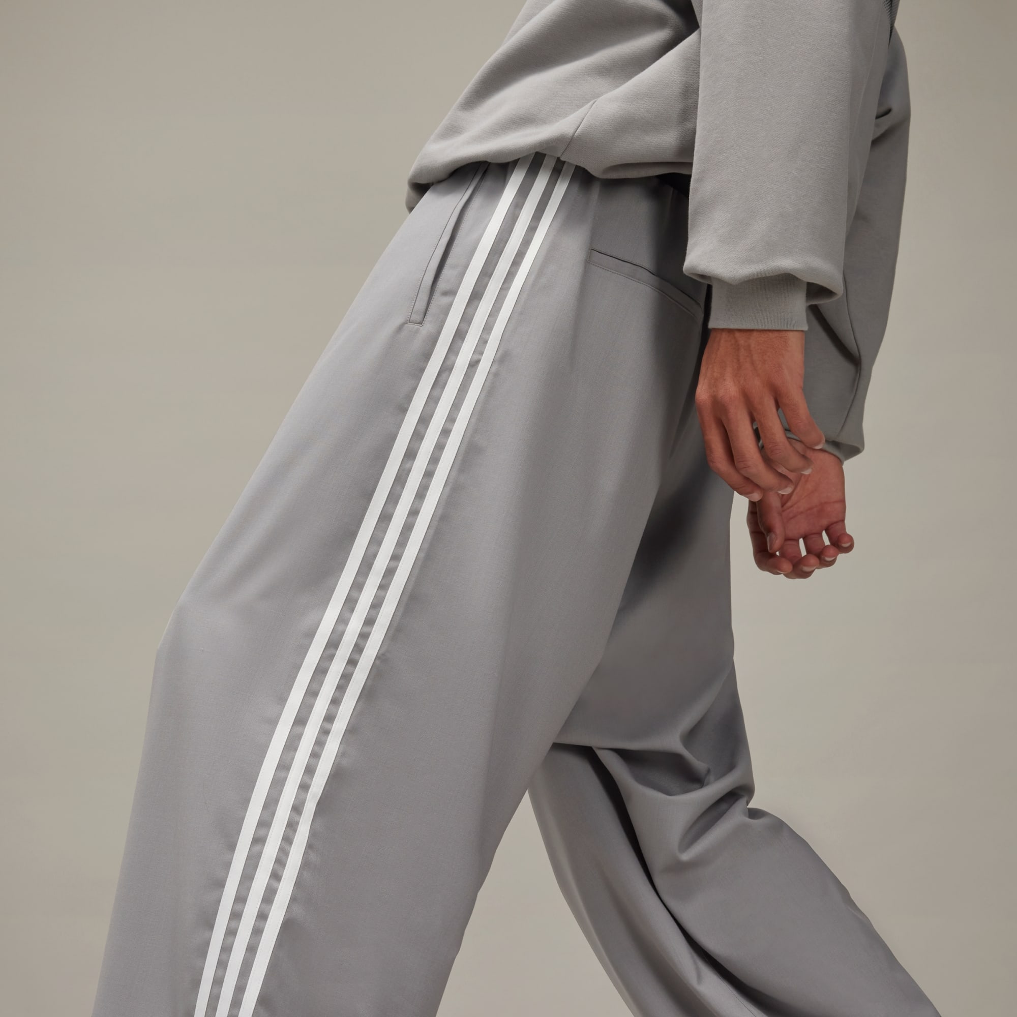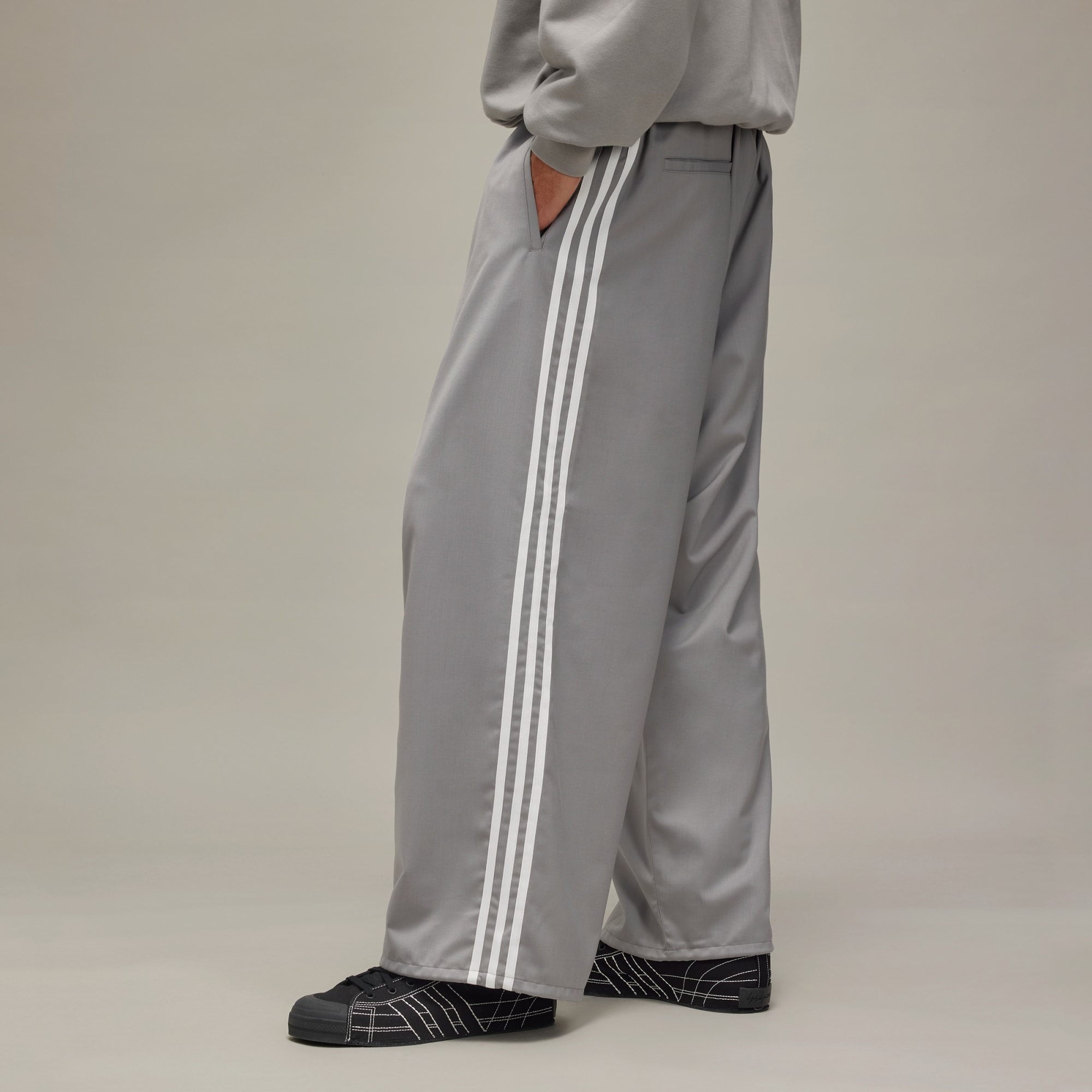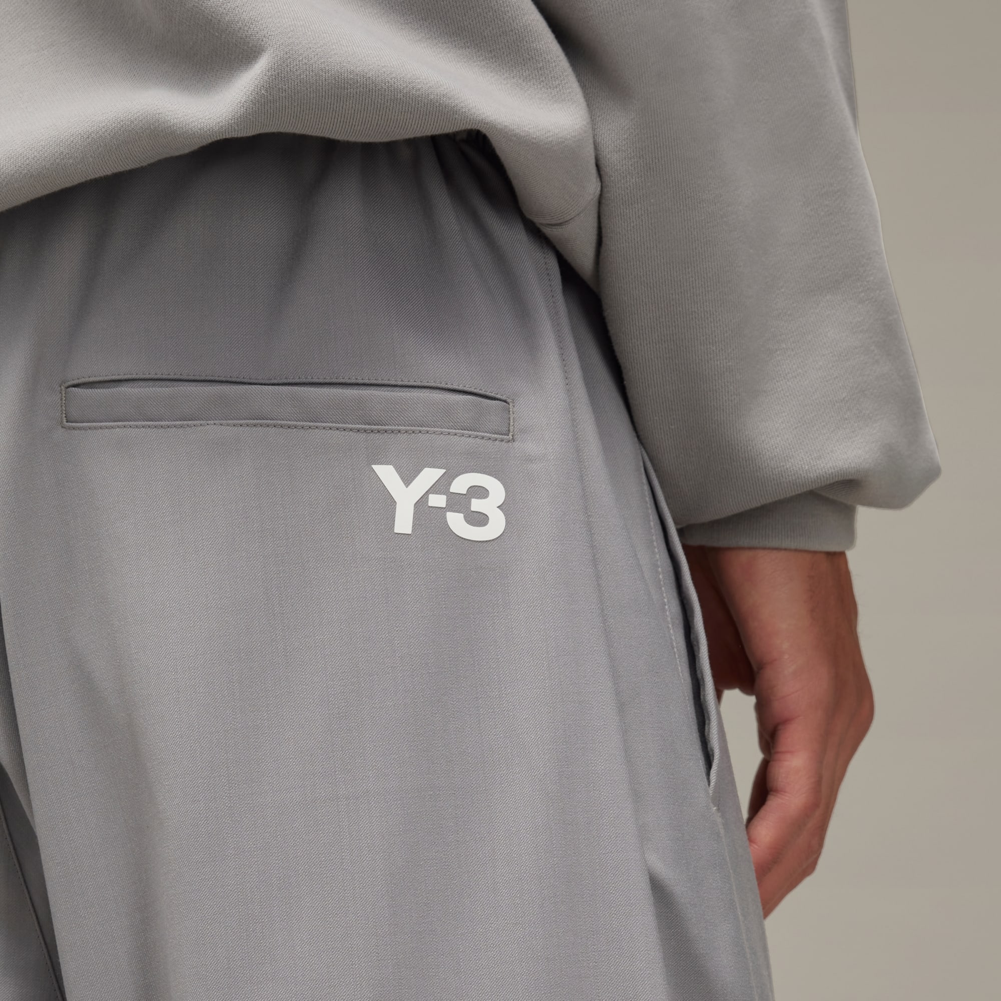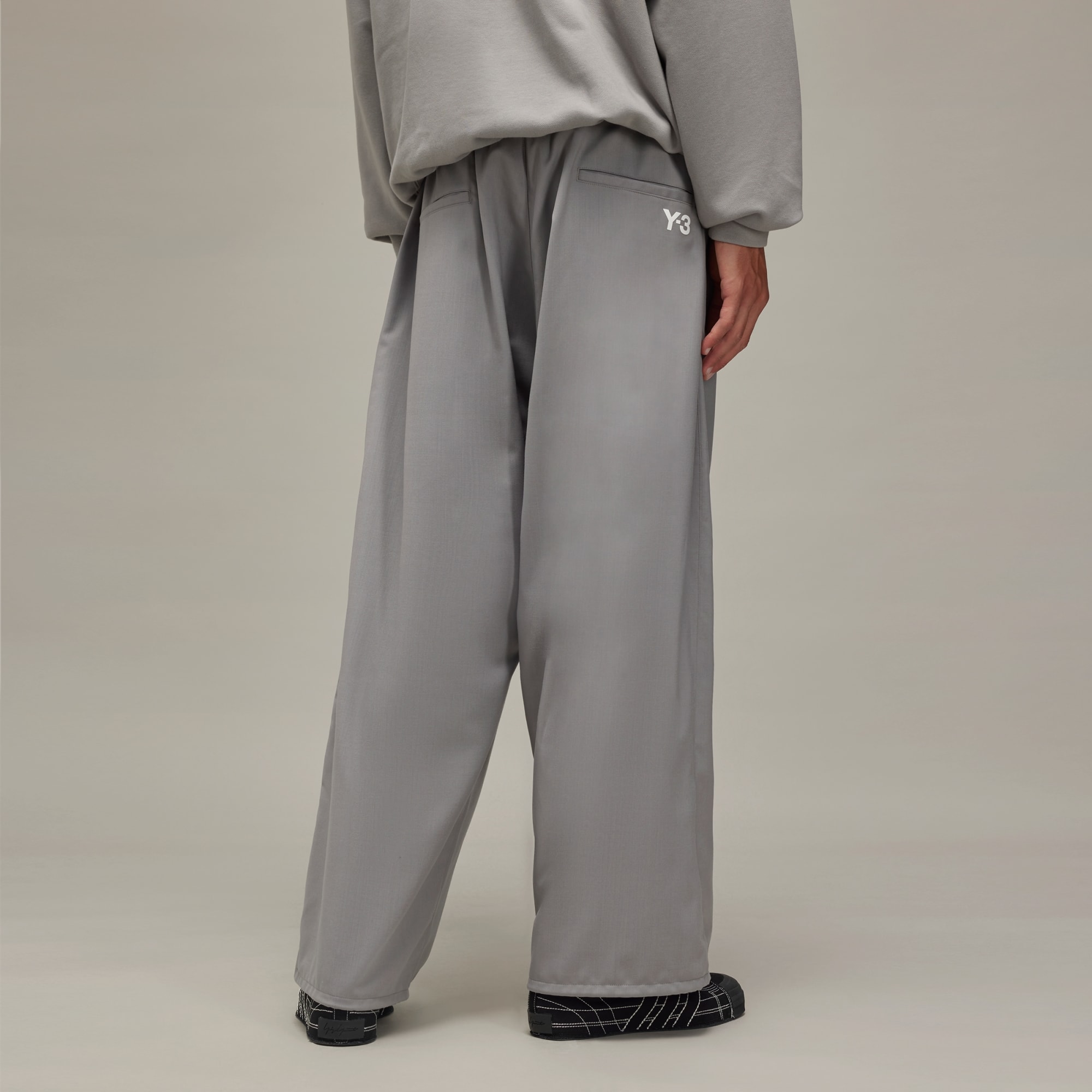 Elegant wool Y-3 pants made in part with recycled materials.