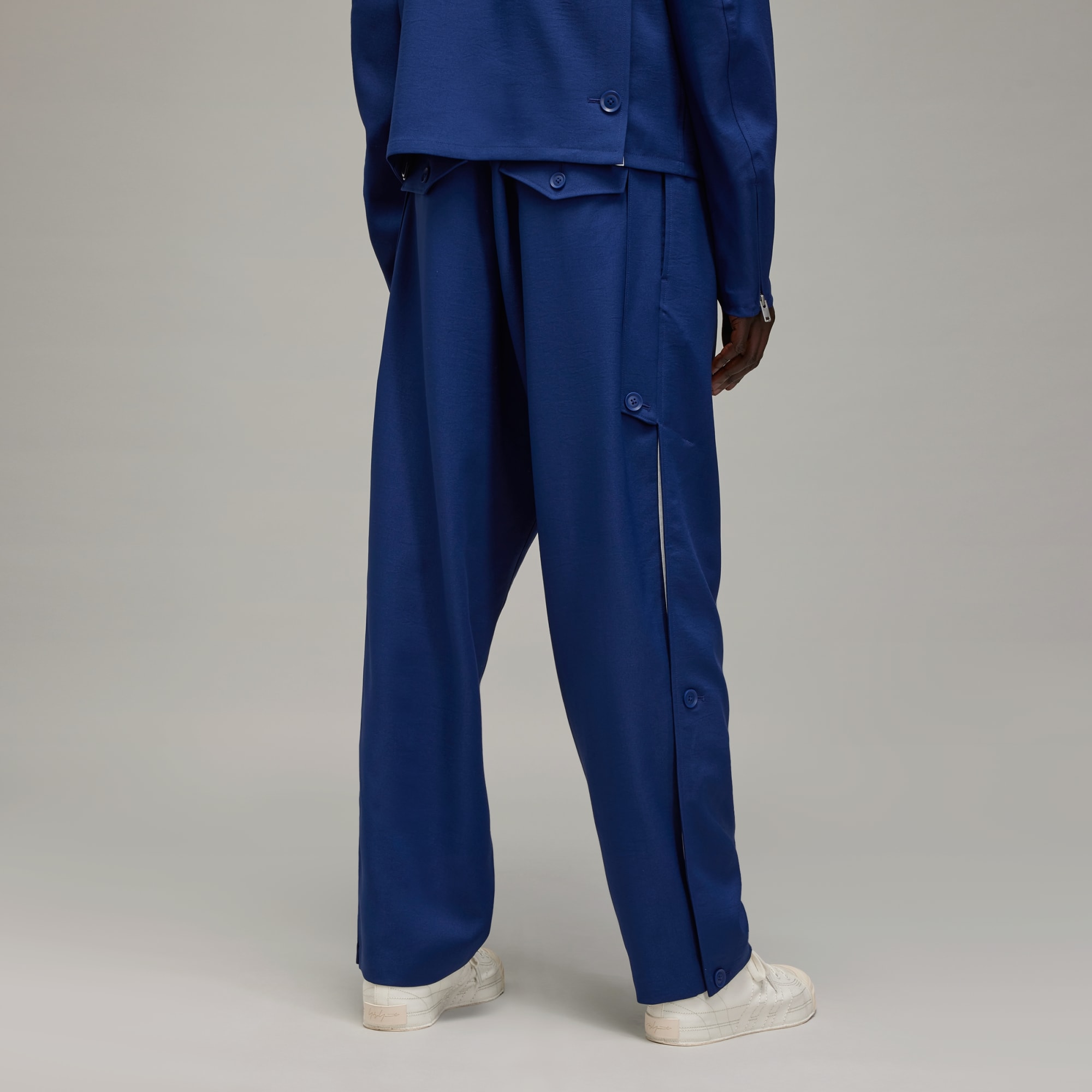 The Y-3 Sport Uniform Pants reinterpret adidas heritage through a fashion-forward Y-3 lens. They're built in durable twill with a nod to utilitarianism through the flap pockets, D-ring and integrated belt. A partially detachable front layer can be unbuttoned to reveal matte-satin 3-Stripes underneath.