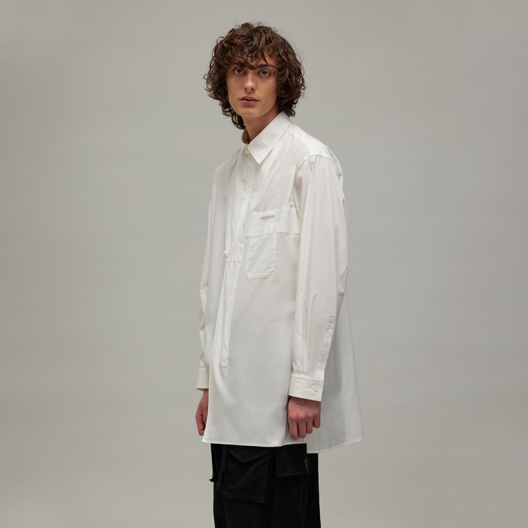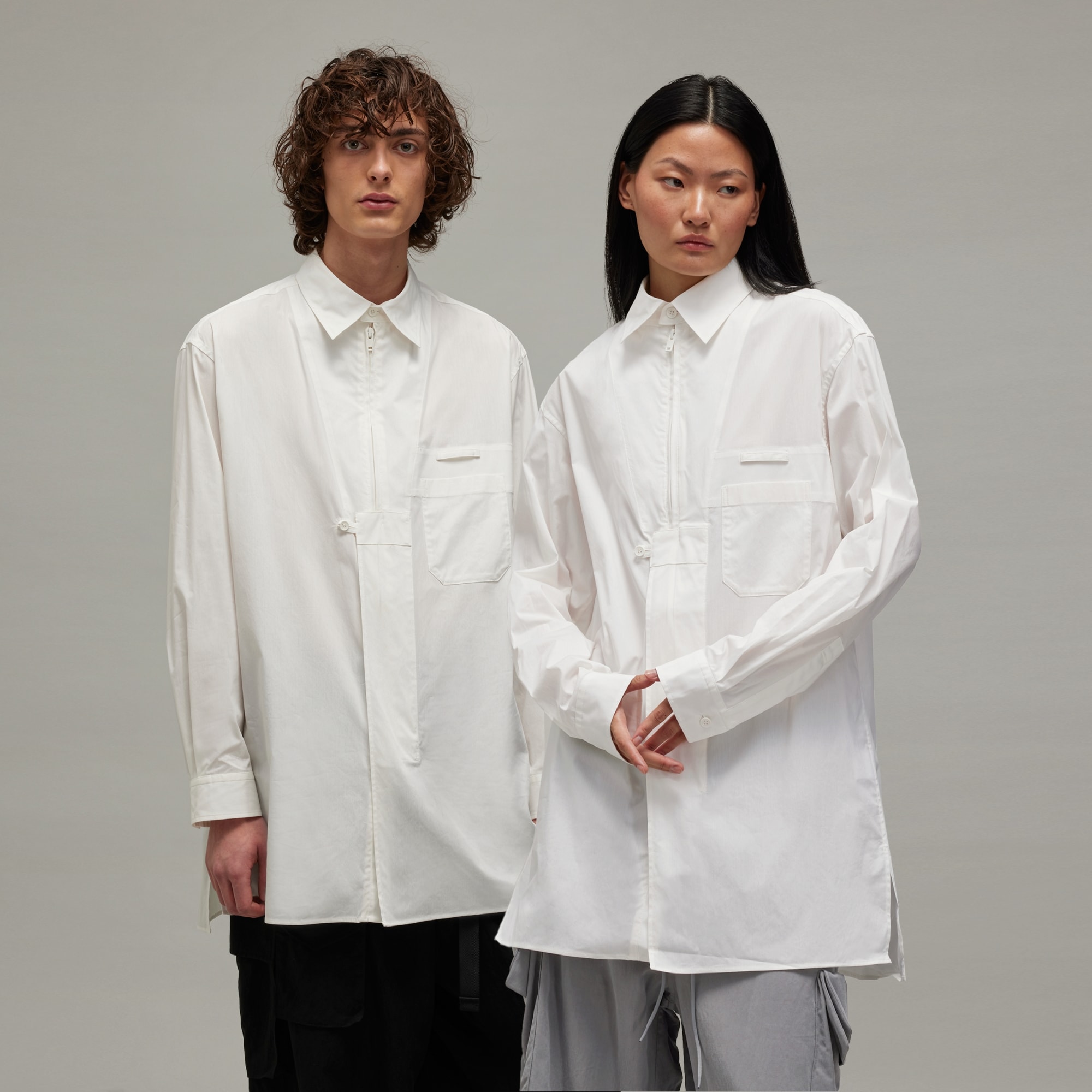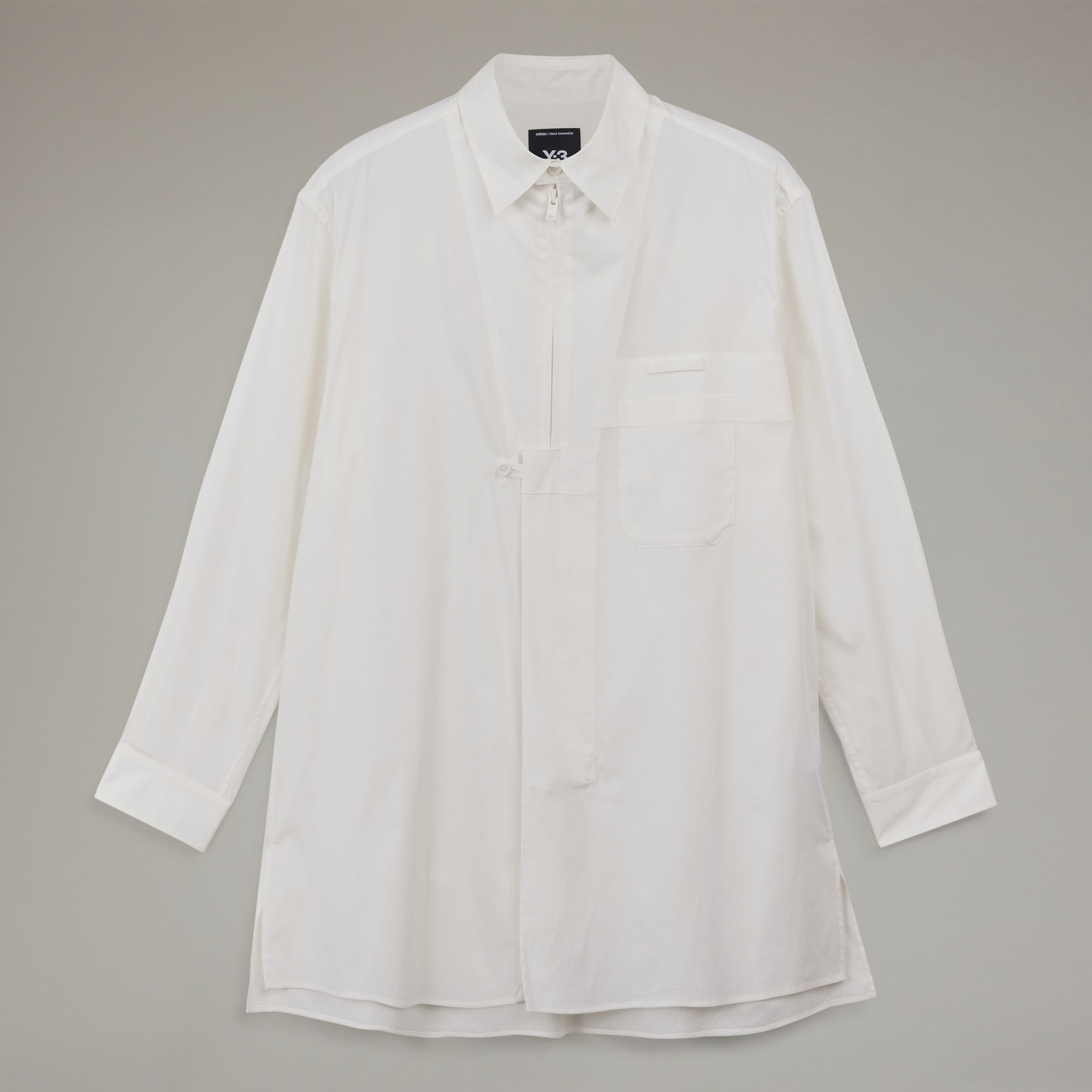 This Y-3 U Zip Shirt is sporty, stylish and designed to elevate any look. The cotton and nylon plain weave build has some added stretch and a relaxed fit for a wider silhouette. A centre-front zip and a patch pocket provide iconic touches, and the tonal satin Y-3 heat-transfer logo offers a signature finish.