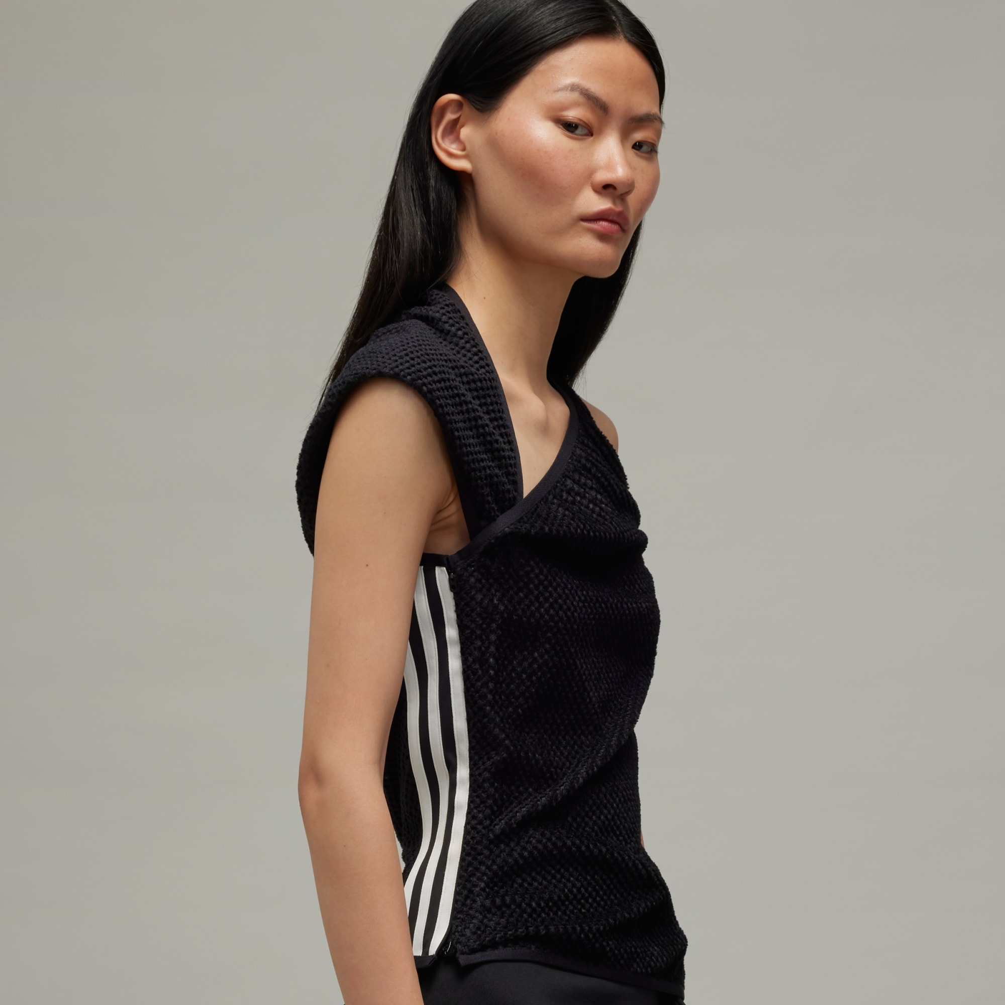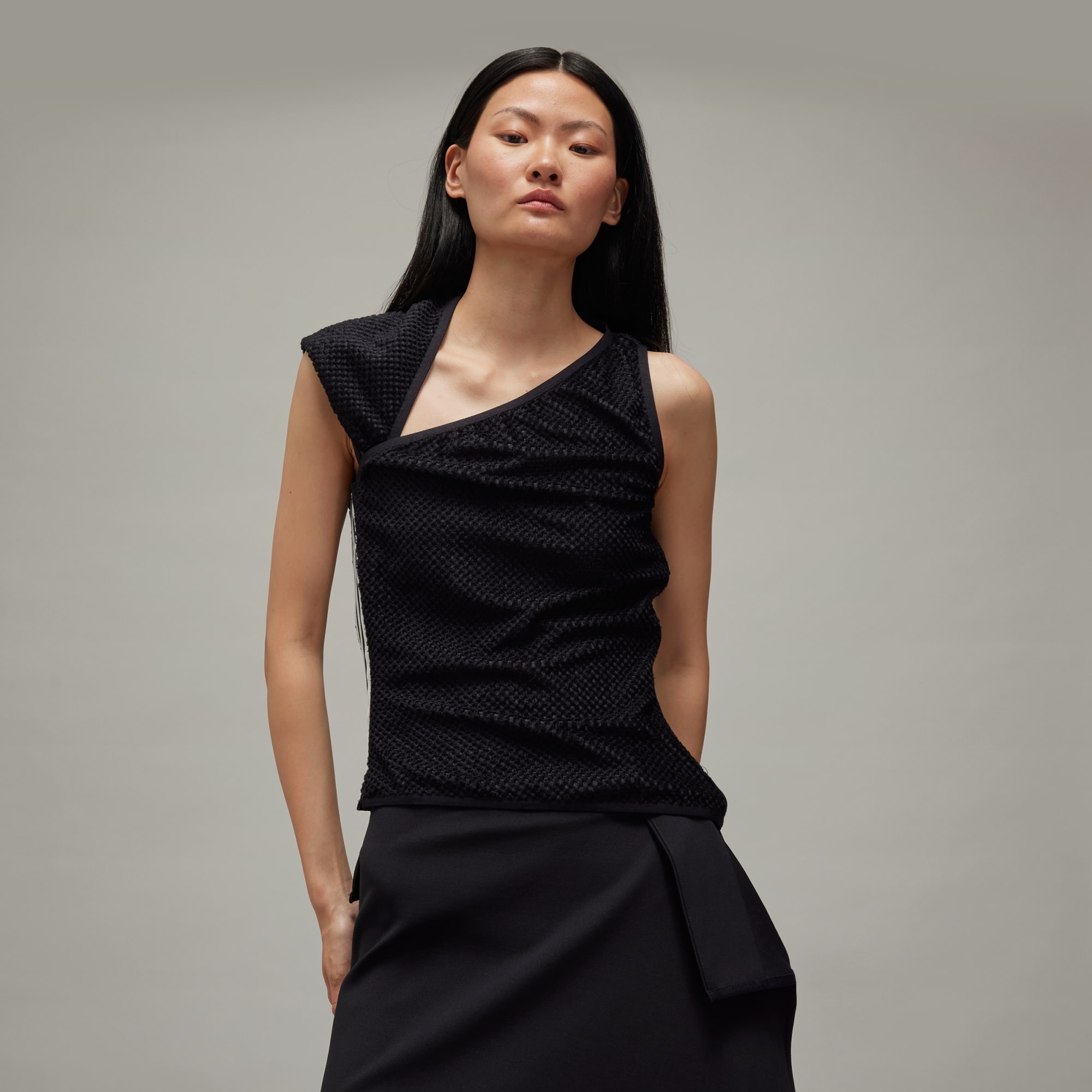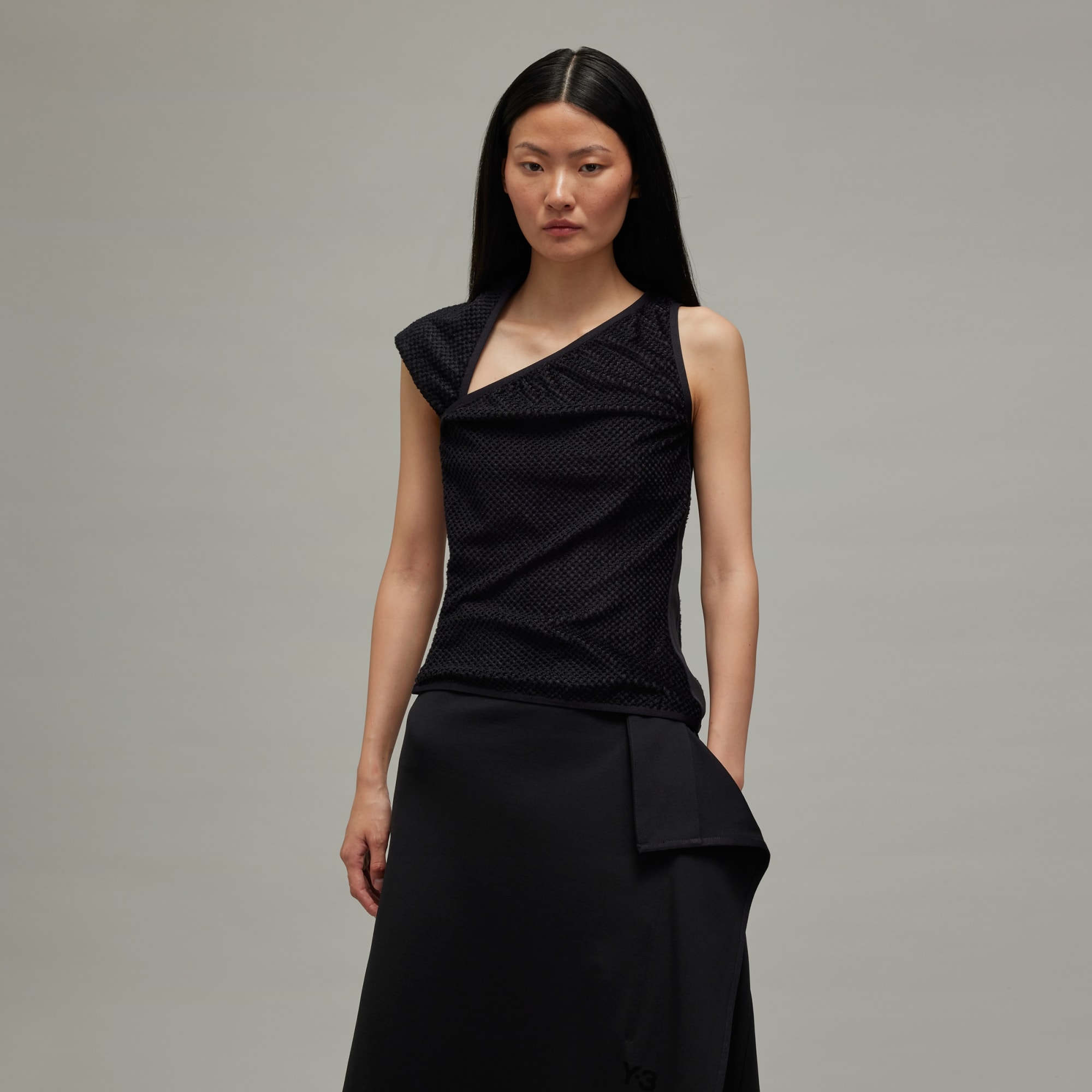 An asymmetrical warp knit top from Y-3.