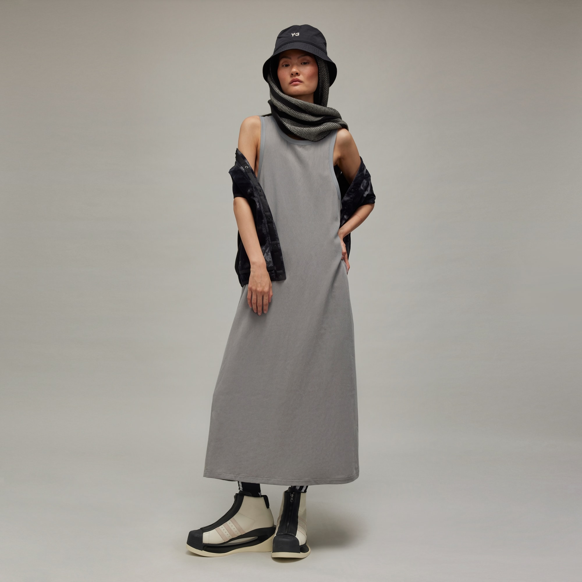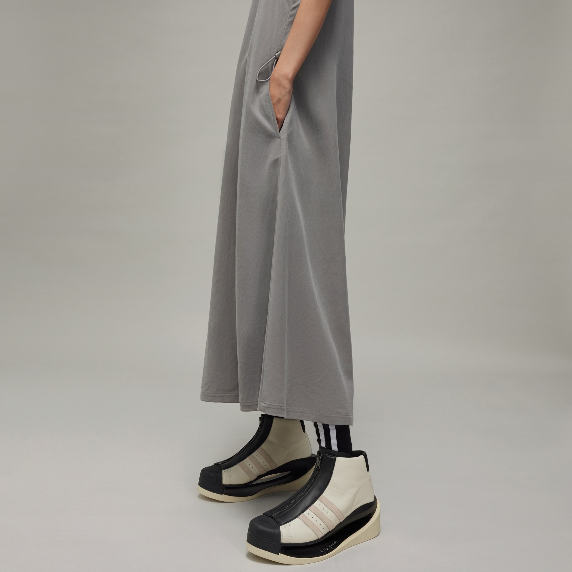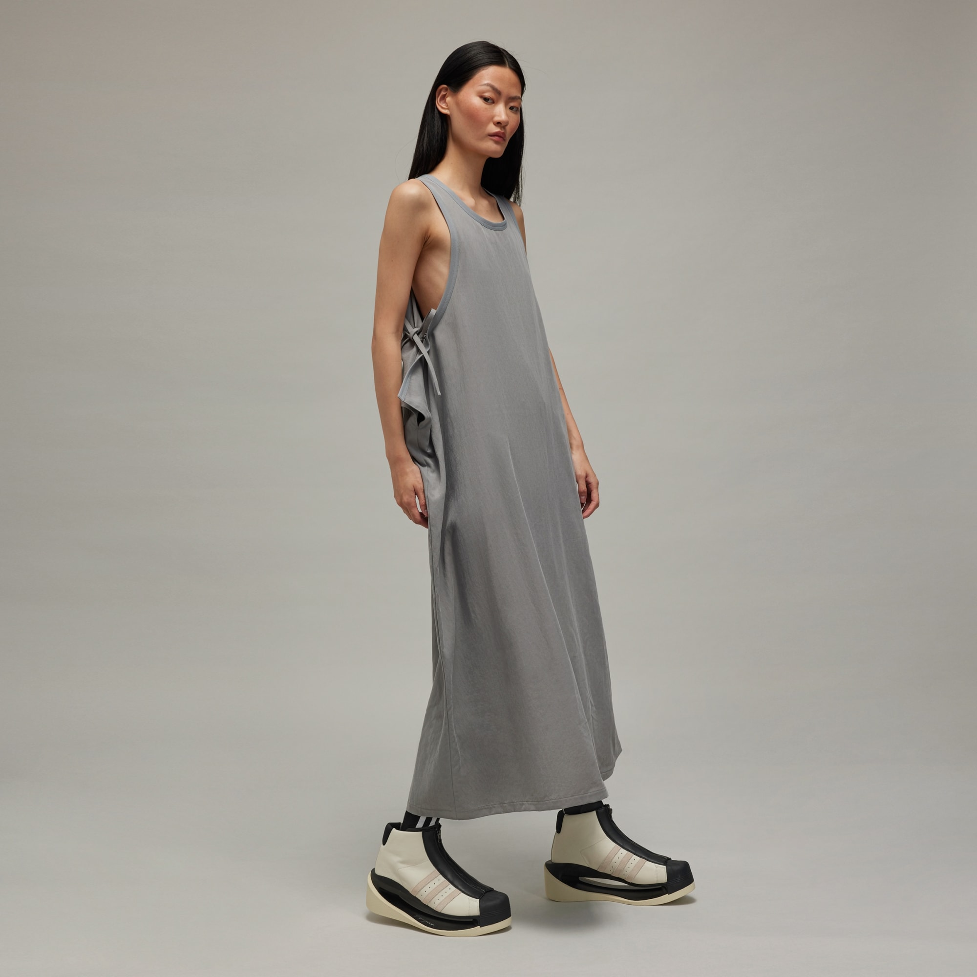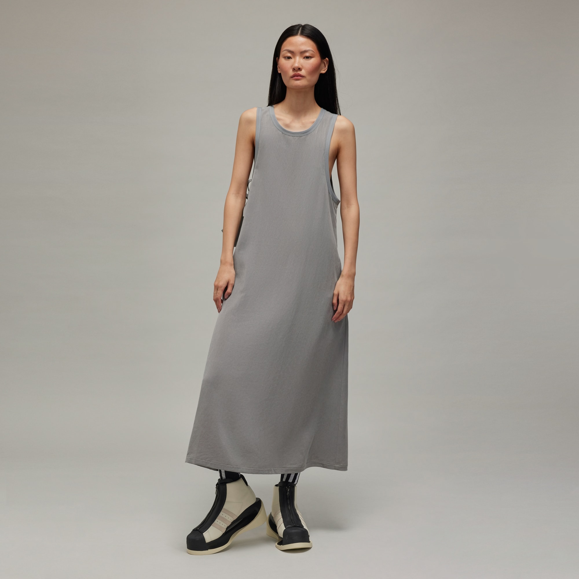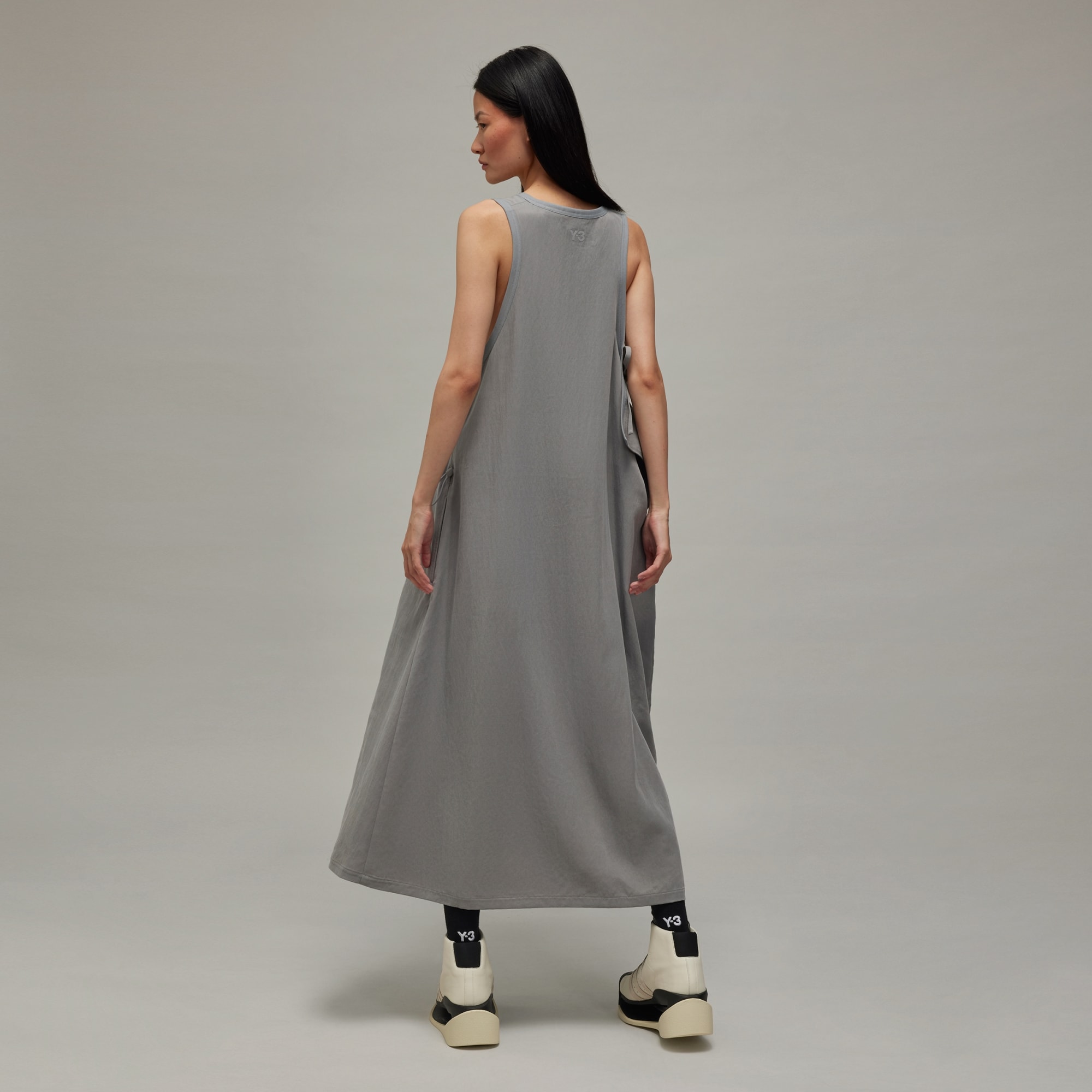 A sleeveless Y-3 dress made of washed twill fabric.