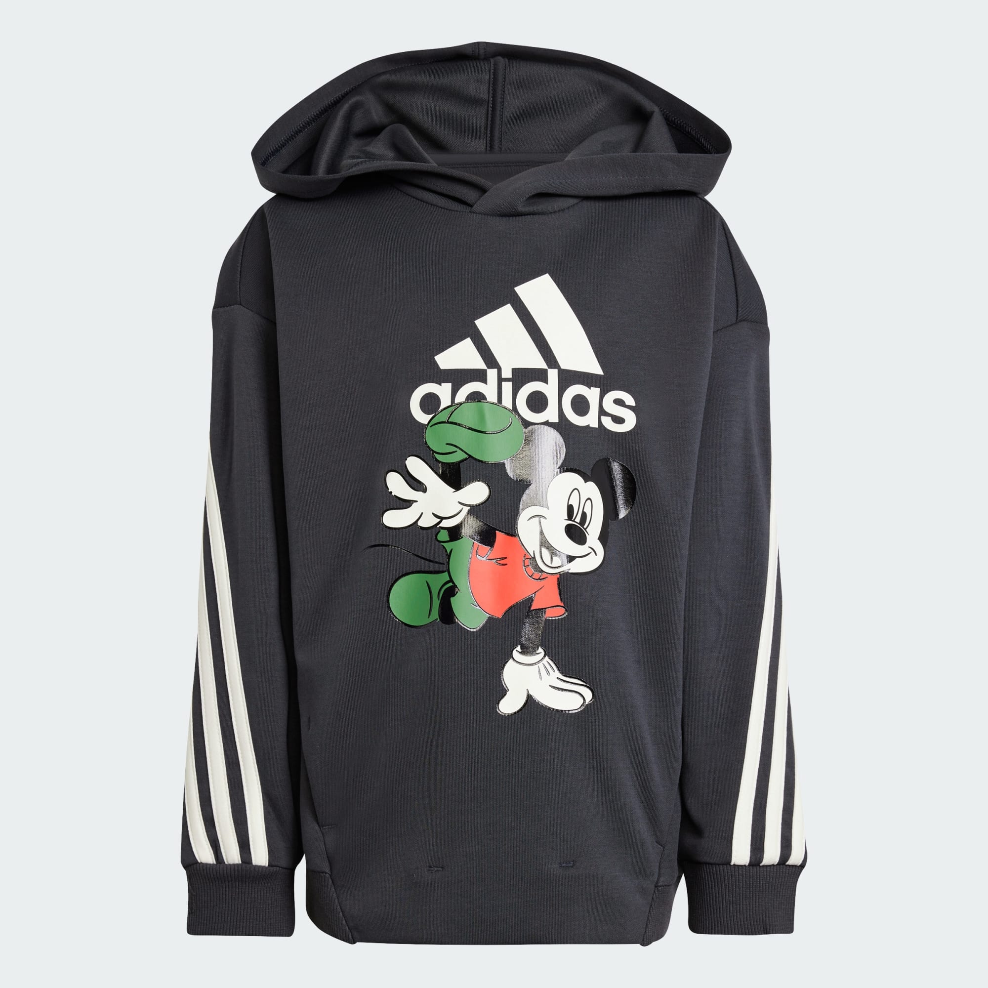 Four children breakdancing with hula hoops each casting Mickey & Minnie shadows, wearing the adidas | Mickey & Friends collection